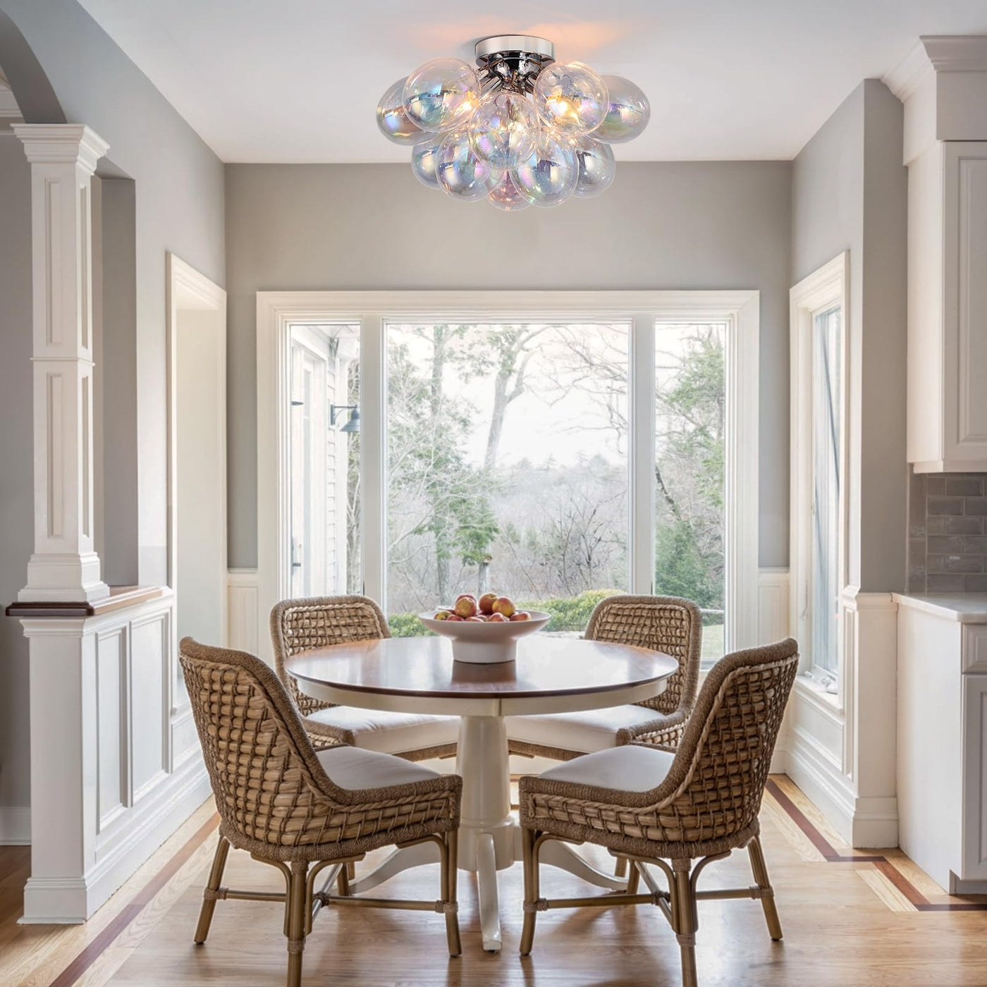 We Are Committed To Provide Light Fixture Of well-made And Reasonrable Price. We Will Provide You With The Best Service. Please Choose And Believe Goodyi. Thank You! The Modern Ceiling Light Are Built In A Sturdy Metal Flush Mount Lamp Body With 13 Beautiful Colorful Bubble Globe Glass Shades Which Are Exquisite Solid Light Resplendent. This Chandelier For Entryway Creating Creating A Charming And Romantic Atmosphere For Your Home. Features: Easy Installation. Includes All Mounting Hardware. Compatible Incandescent Bulbs Cfls And Led Bulbs.Hard-Wired. Installable On Sloped Capable Of Being Dimmed With Compatible Dimmable Bulbs And Dimmable Switch(Not Included Bulbs)Material: Metal And Glasssuitable For A Variety Of Styles: Modern And Elegantsuggested Occasion: Kitchen Foyer Living Room Bedroom Dining Room Bathroom Bar Etc. Product Details: Number Of Lights: 3 Lights Primary Material: Metaldimmable: Yes Bulbs Included: No Base Type: E12 Voltage: 110-120V Size: (You Can See Picture Of This Retro Fixture Light About Size)