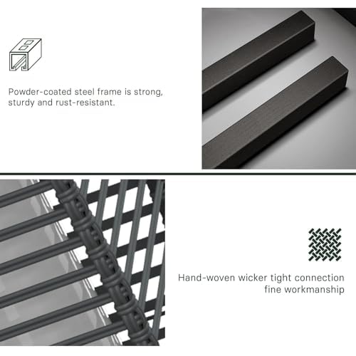 Q: What materials are used in the construction of the lamp?A: The lamp is made from handwoven resin wicker, tested for outdoor resilience, with a rust-resistant steel frame that is e-coated and powder-coated for durability.