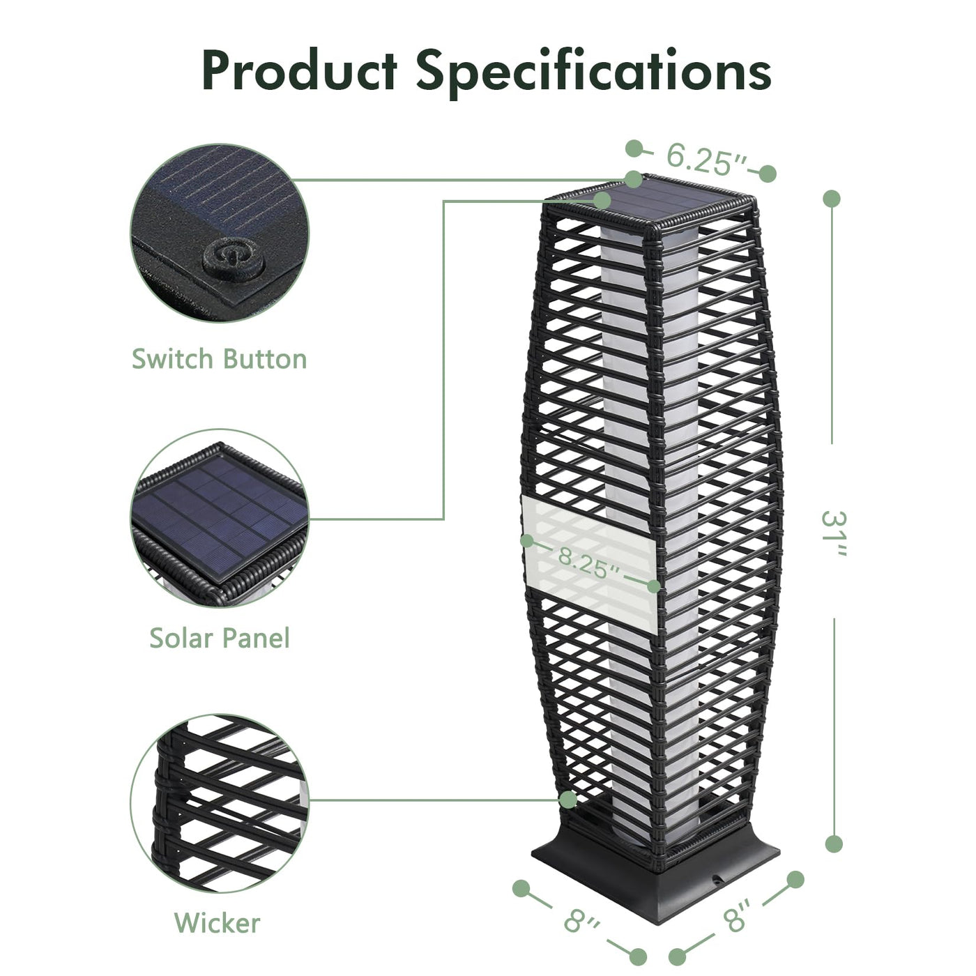 Grand Patio 2-Piece Outdoor Floor Lamp Solar Powered Lantern Waterproof Wicker Boho Deck Lights For Garden Porch Decor, Large Crossover
