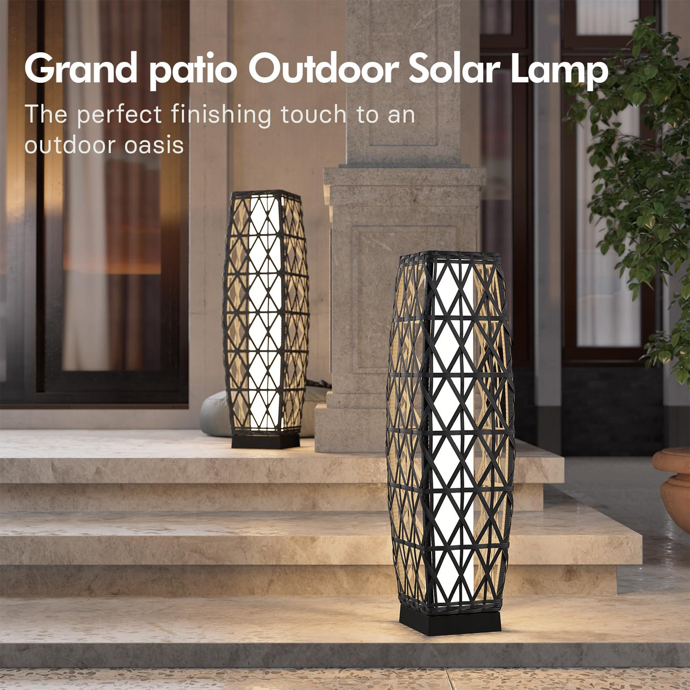 Grand Patio 2-Piece Outdoor Solar-Powered Woven Wicker Lantern Floor Lamp Decoration For Deck Garden Lawn Porch - Medium Cindy,