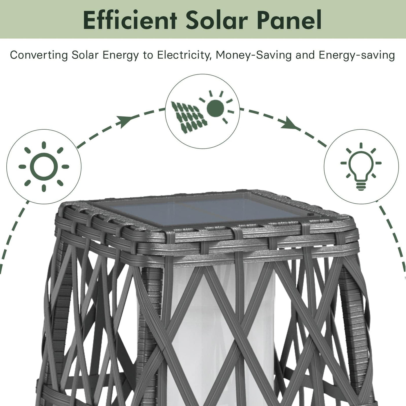 Grand Patio Solar Outdoor Floor Lamp Wicker Lantern Decoration Light For Deck Garden Lawn Porch-Medium Cindy, Silver Gray