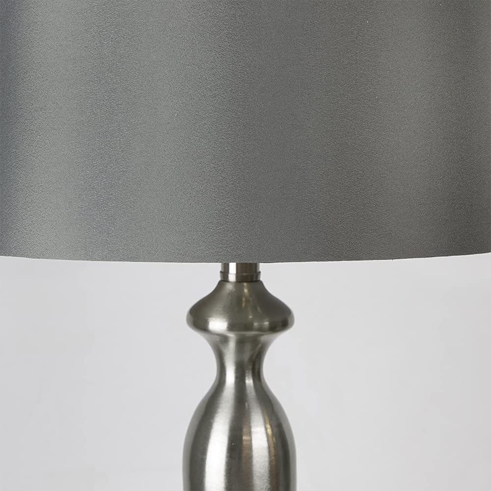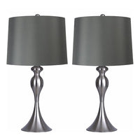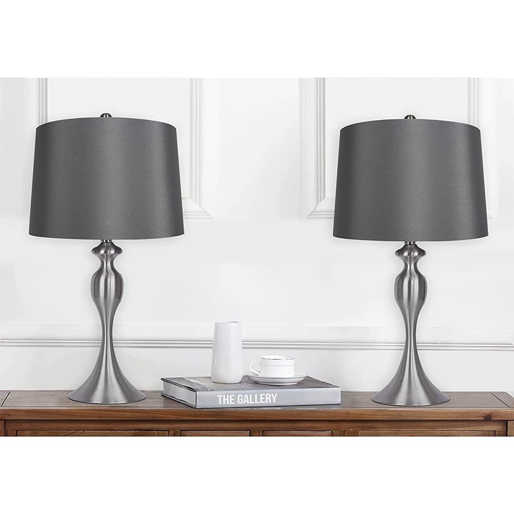 - **Stylish Design**: Featuring a chic dark grey silk-like lampshade atop a curvaceous brushed nickel body, these lamps stand at a total height of 26.5 inches, making them the perfect accent for any table or surface.