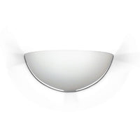 Design by A19 Lighting.The Great Capri Wall Sconce's snazzy and unusual shape provides brilliant up-light. The simple bowl shape is set off by long slits of light across the underside, for visual interest and additional light. Finish to match your decor or take advantage of our unfinished white bisque.American-made paintable ceramic wall sconce.UL listed for damp locations (indoor and outdoor) Offered with incandescent or GU24 compact fluorescent versions.Choose your location type:Damp