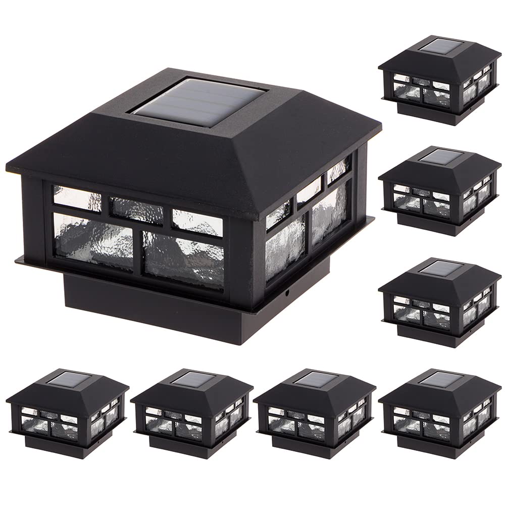 Q: How long do the solar lights last on a full charge?A: These solar post cap lights can provide up to 8 hours of illumination on a full battery charge, ensuring your outdoor space remains beautifully lit throughout the night.