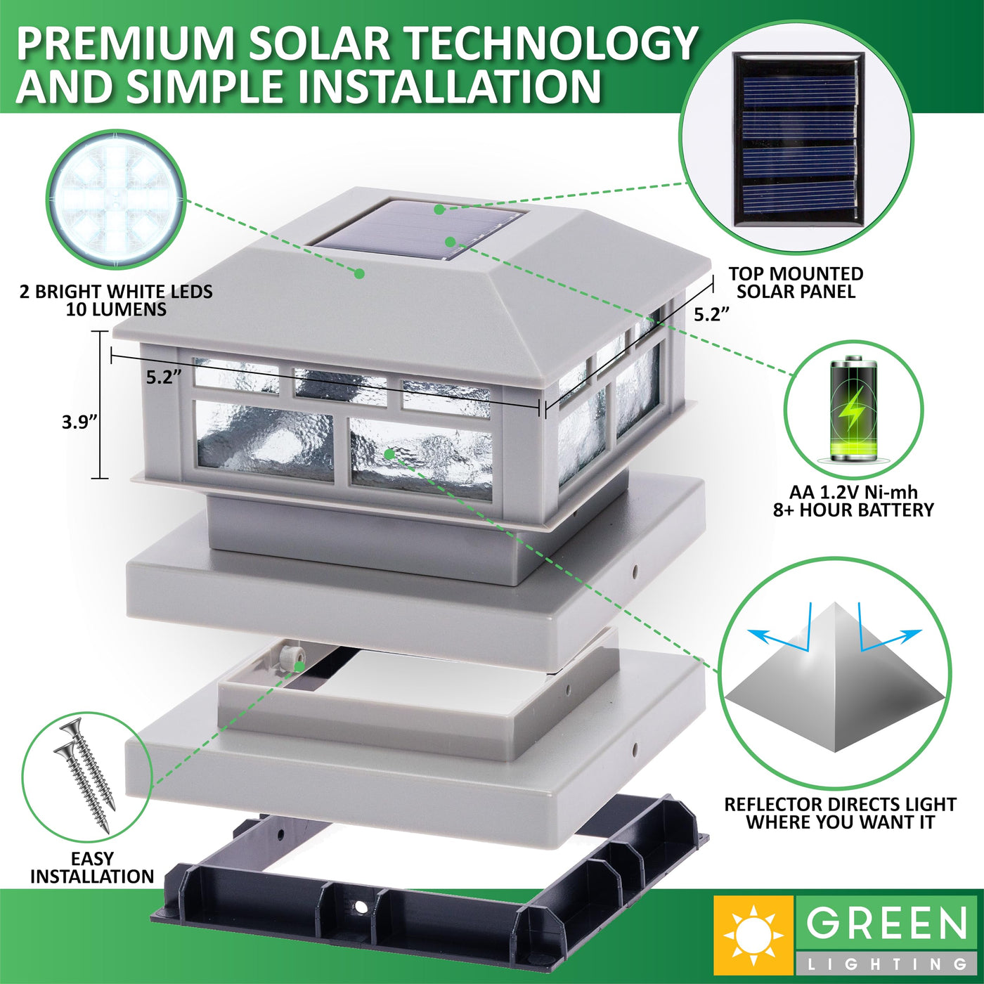 Greenlighting Modern Solar Post Cap Lights Fits 4X4 Wood, 4X4 & 5X5 Pcv/Vinyl Outdoor Solar Powered Post Cap Light, Fence Post,