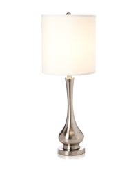 Metal Table Lamp in Brushed Nickel Finish (12x12x13" White Linen Drum Hardback Shade)
