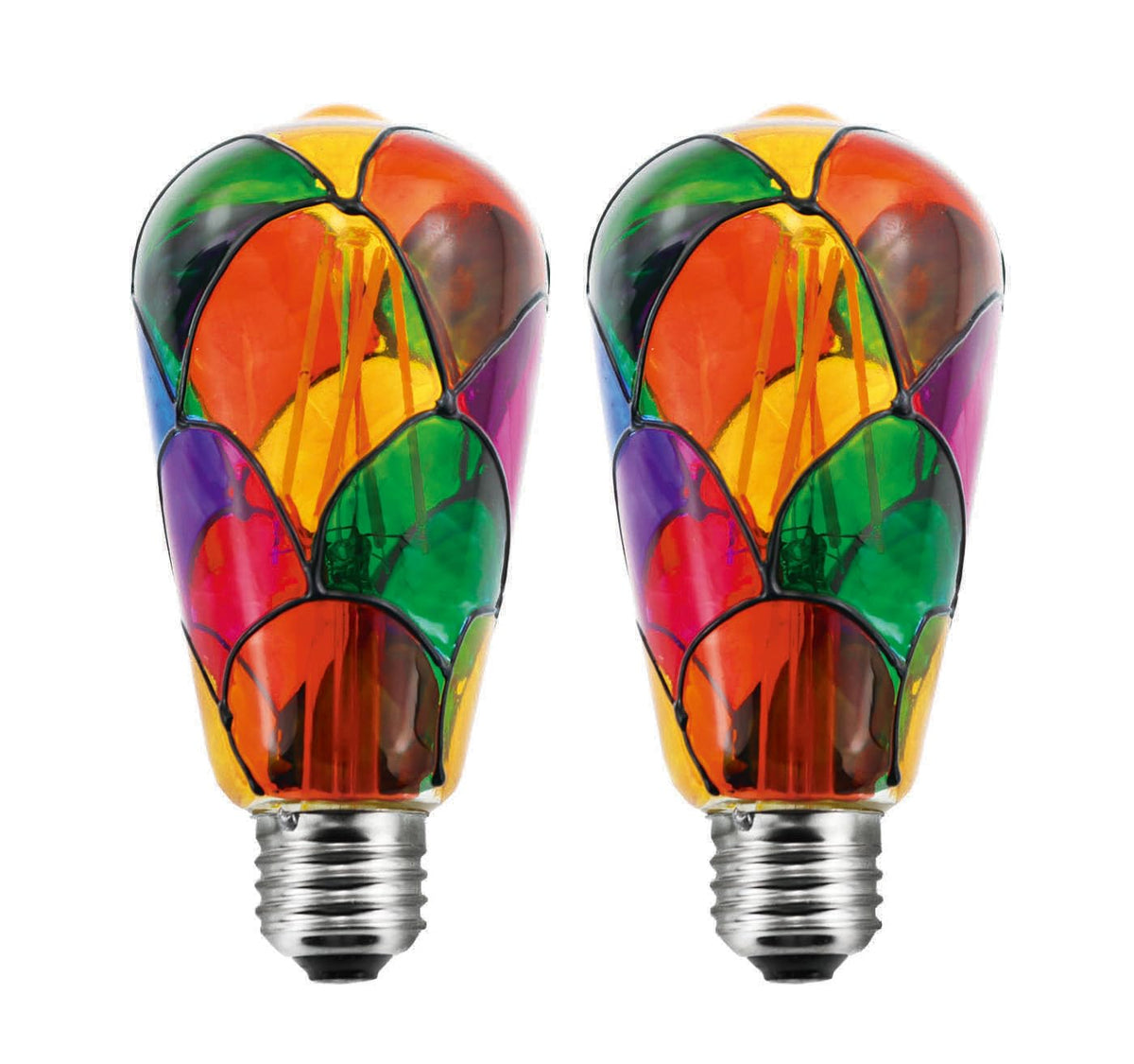 Greeogin Dimmable Stained Glass Led Light Bulb 6W Ac120V, 60W Halogen Bulb Equivalent, E26 St64 Color Led Light Bulbs For Home P