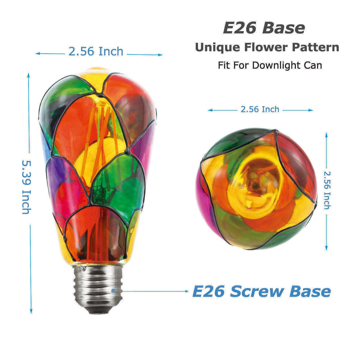 ST64 Colored Glass LED Light Bulb Specifications : Brand: Greeogin Standard base: E26 Voltage: 110-130V Power: 6W Luminous: 600 lm Size : 2.56 * 5.39 inch Material: Glass Dimmable: YES (Smoothly dimming from 0% to 100%) Hand-made iron wire reinforcement design on the bulb surface, not easy to break. Combined with the retro art lampshade, your life is full of splendid flavor.
