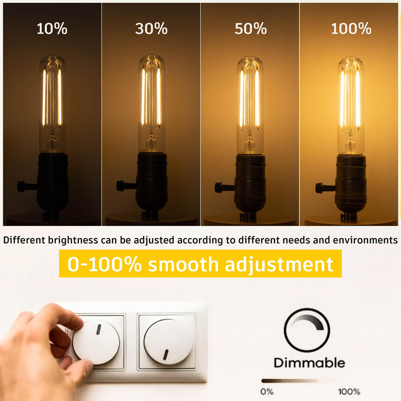 Q: What makes Grensk Dimmable E26 LED Tubular Light Bulbs different from traditional incandescent bulbs?A: Grensk Dimmable E26 LED Tubular Light Bulbs consume only 4 watts of power while providing 400 lumens of brightness, which translates to a 95% energy savings compared to traditional 40-watt incandescent bulbs. They also offer dimming capabilities that allow for smooth brightness adjustments from 0% to 100%, enhancing your lighting experience.