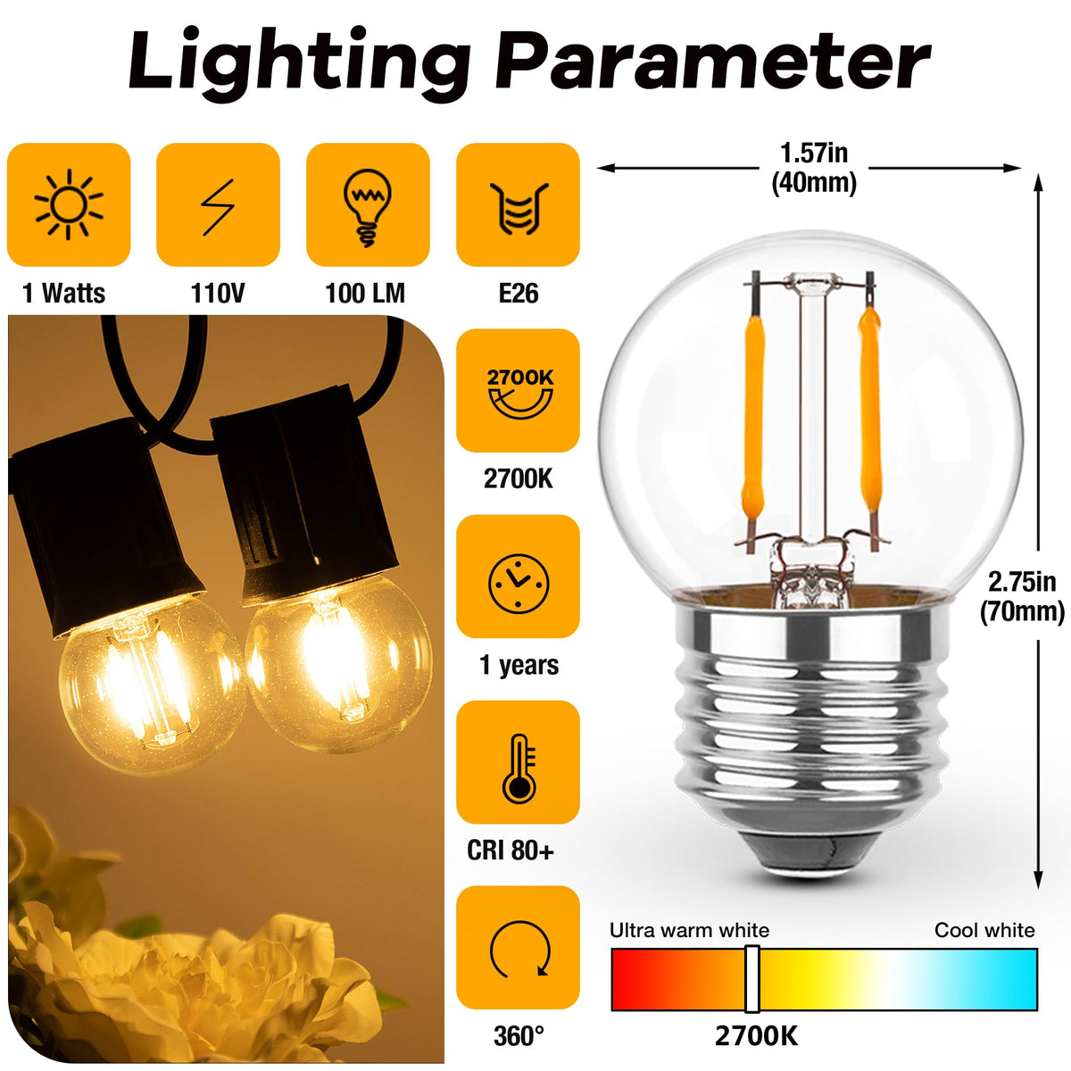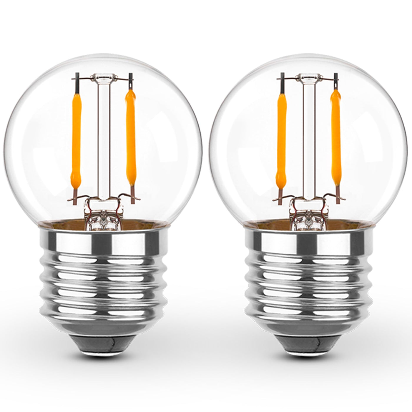 Grensk E26 Low Light Bulbs,1Watt G40 Edsion Small Led Light Bulbs Equal To 10W Incandescent,2700K Warm White For Bedside Lights, Wall Lights, Porch Lights, Courtyard Light Strings,230V,2Pcs