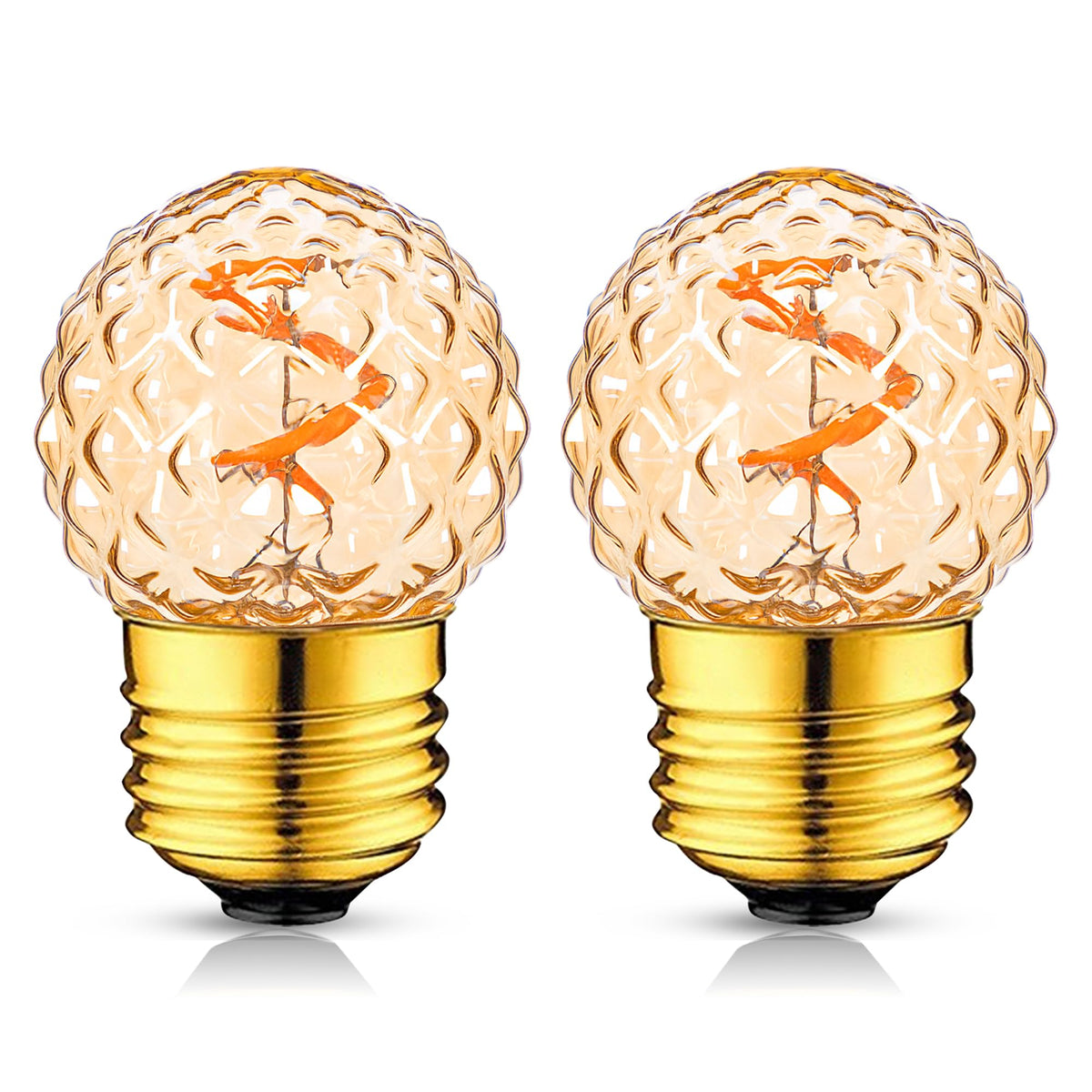 Q: What are the key features of the Grensk E26 LED Amber Light Bulbs?A: Key features include a unique pineapple-shaped design, high color rendering (CRI > 80+), low wattage of 10 watts, and a 360° beam angle, providing a retro and elegant style for various occasions.