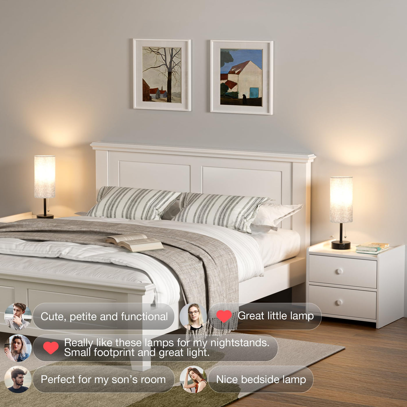 Q: Are the bulbs included with the lamps, and what type are they?A: Yes, the lamps come with included 60W bulbs that provide flicker-free, gentle illumination, designed to minimize eye strain and enhance comfort during reading or relaxation.