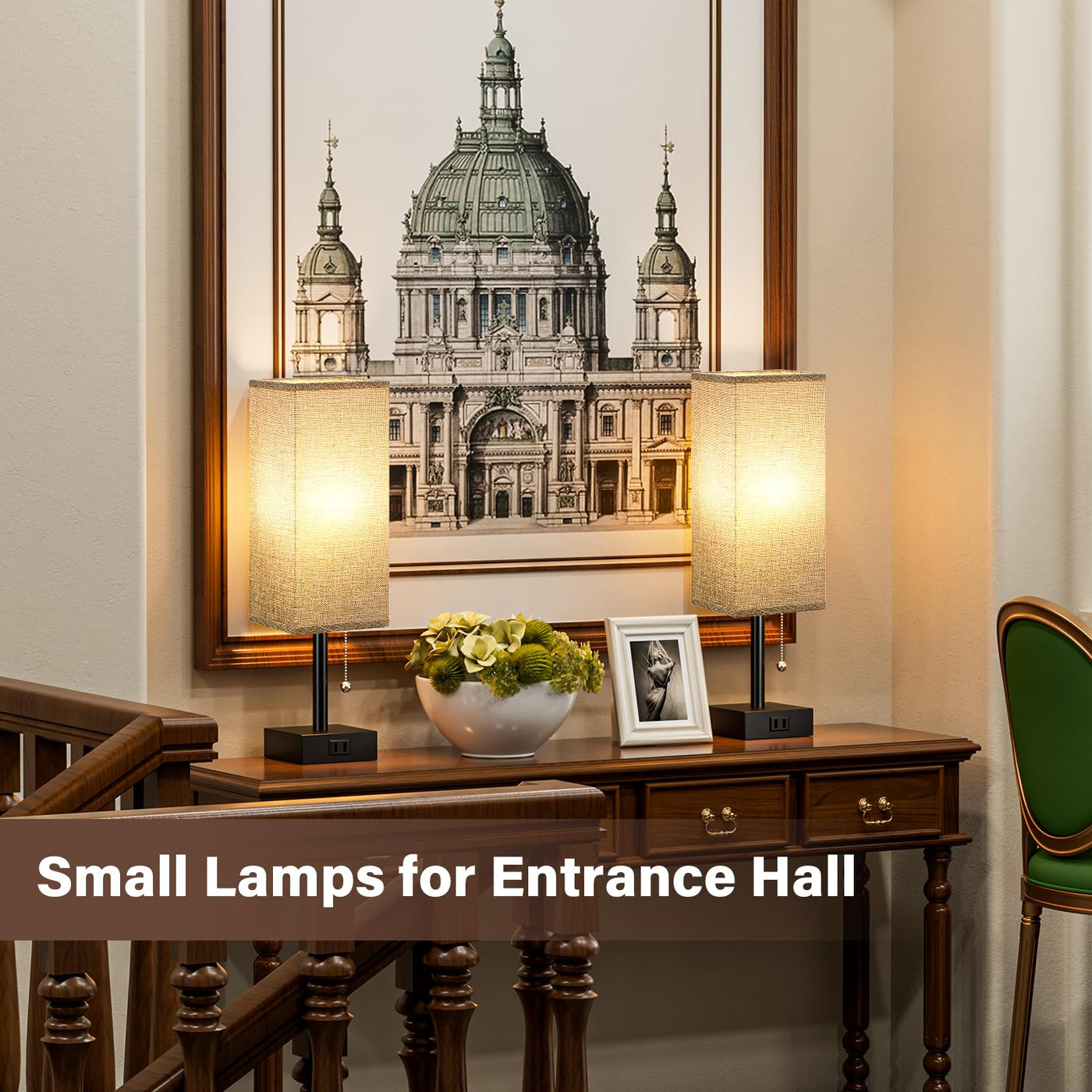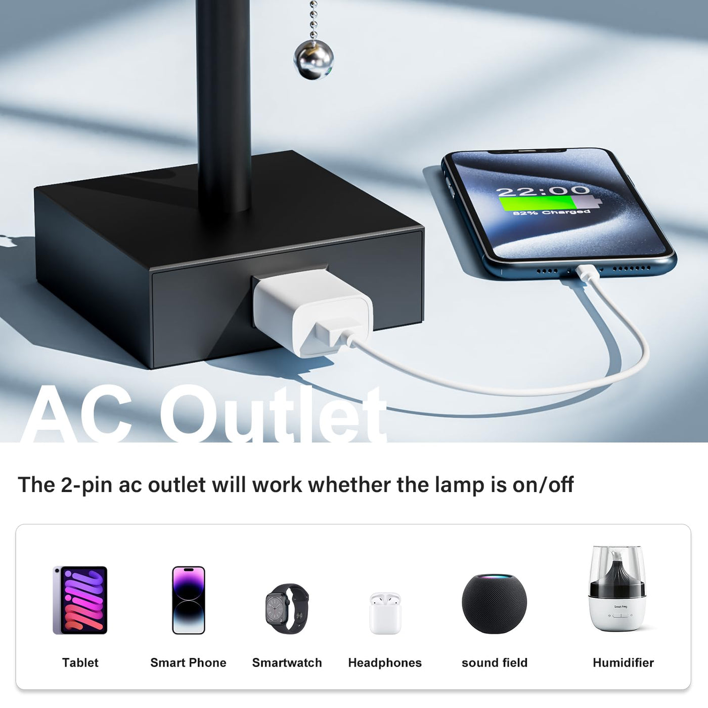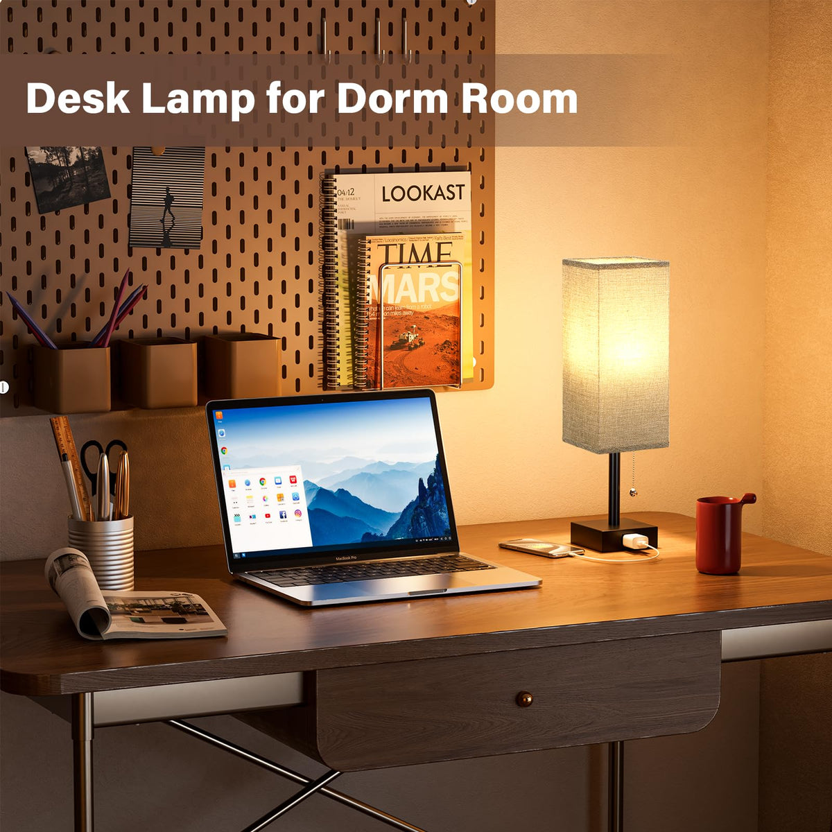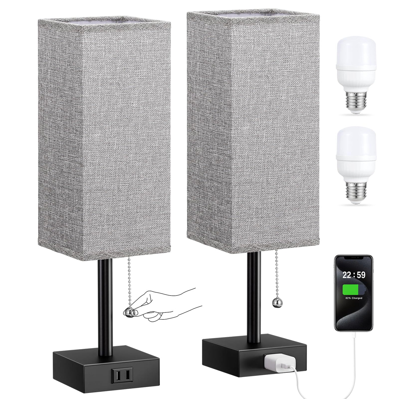 Grey Bedside Lamps For Bedroom Set Of 2 - Small Nightstand Lamp With Ac Outlet Charging Port, 3 Color Temperatures Rectangular D