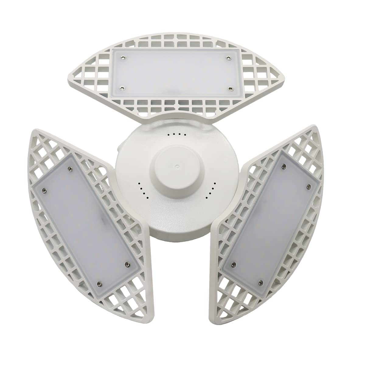 Q: How do the adjustable panels work for lighting?A: The garage light features three independent adjustable aluminum panels that allow you to customize the direction of the light, providing 360° illumination for optimal light placement in any space.