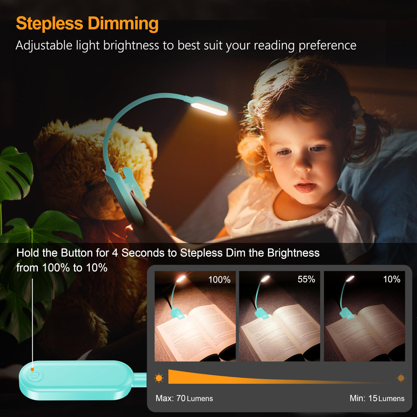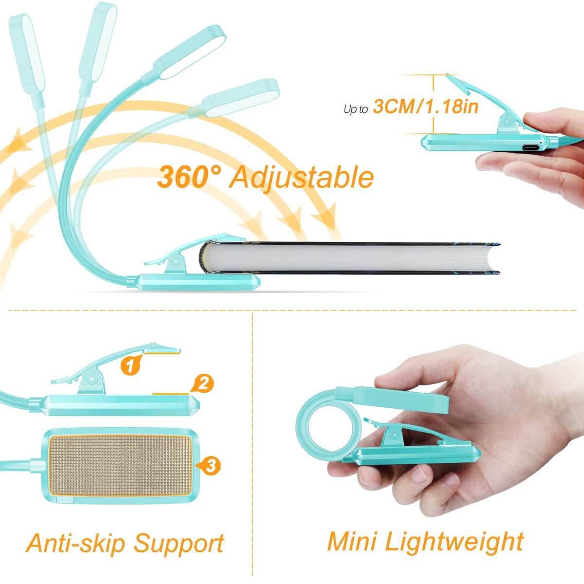 - **360° Flexible Neck & Secure Clip**: The 360° bendable gooseneck allows you to position the light at any angle for optimal illumination. Its anti-skid clip design ensures a secure grip on e-readers, books, shelves, or any surface without leaving marks or scratches, providing versatility and convenience wherever you read.