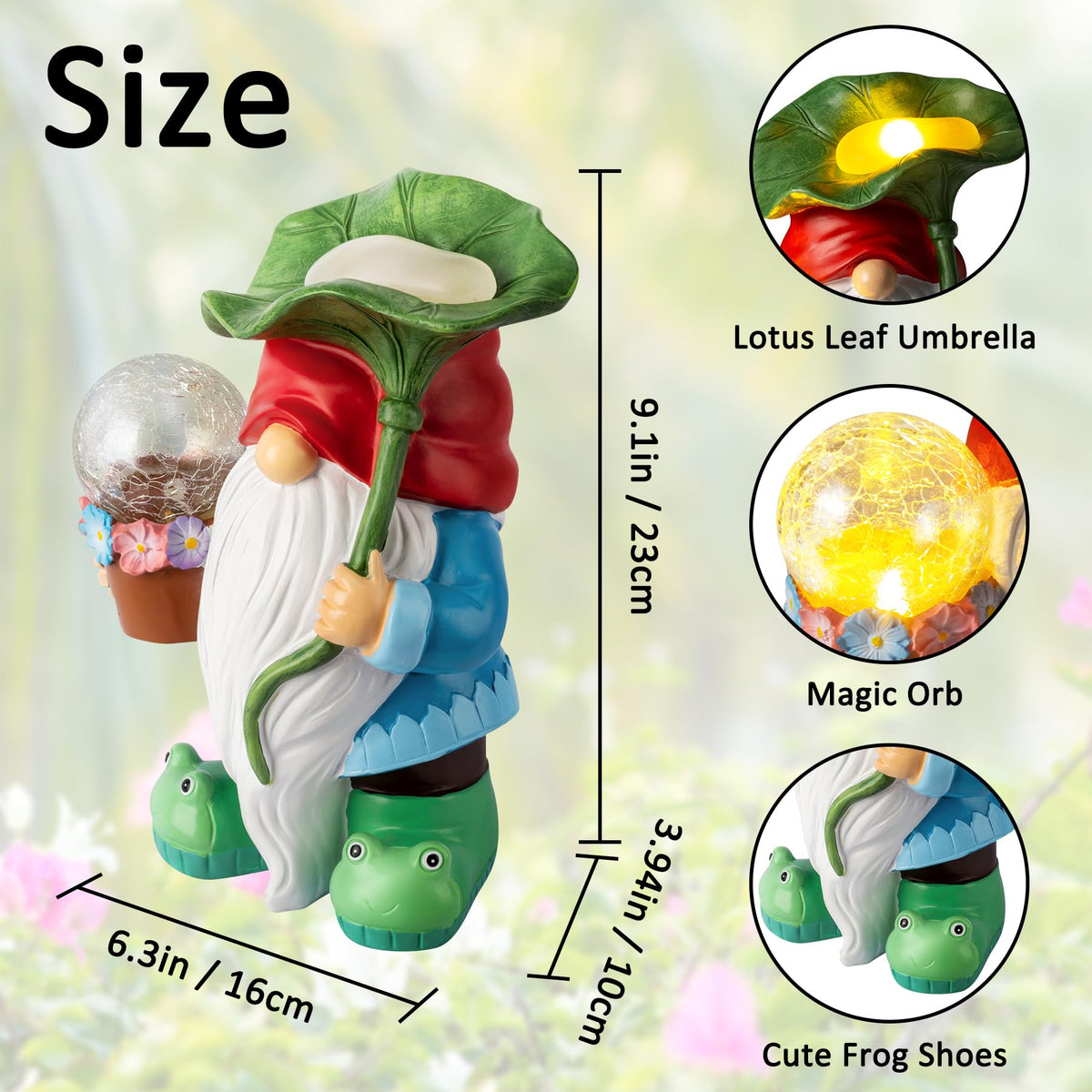 Grovind Garden Gnomes Outdoor Decorations - Solar Gnome Statue With Led Lights, Funny Magic Orb Decor For Patio Lawn