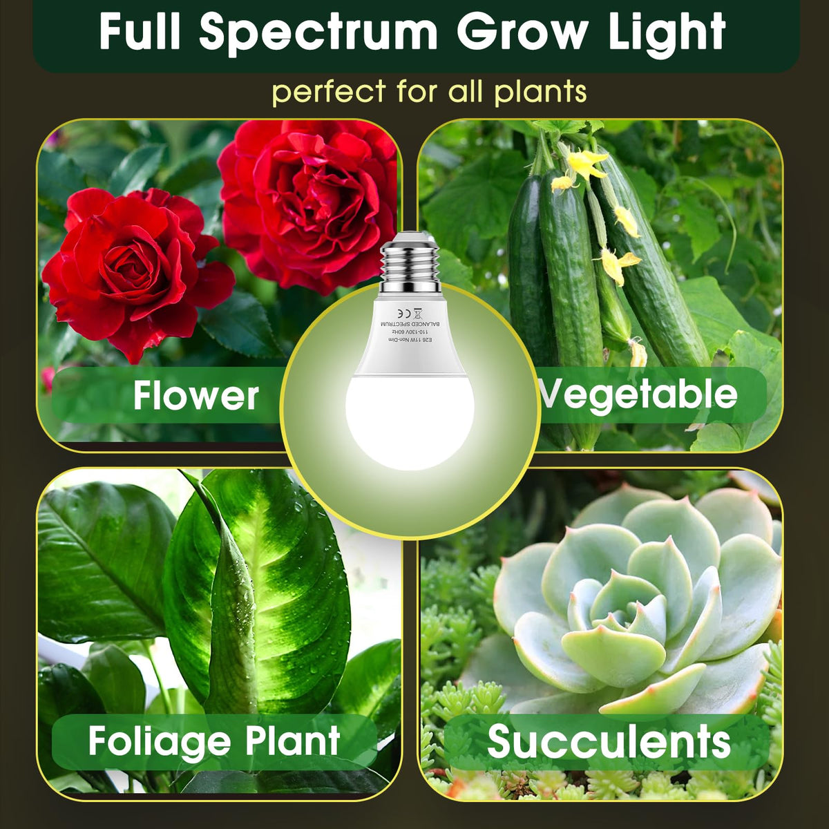 Q: Can these bulbs be used for all types of plants?A: Yes, these grow light bulbs are versatile and suitable for various indoor plants, including tomatoes, cucumbers, peppers, leafy greens, and herbs, supporting them through all growth stages.