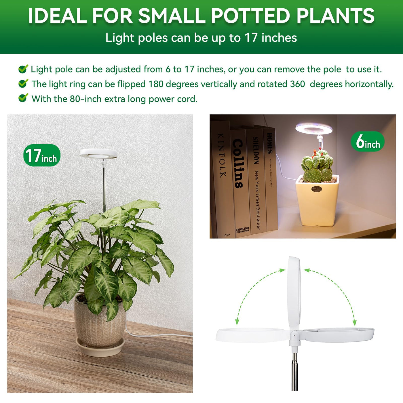 Grow Light For Indoor Plants, Full Spectrum 48Leds Small Grow Light, Plant Light Super Bright With 4/8/12/18H Auto Timer, Dimmable, Adjustable Height 7"-17", Halo F3.5", Power Cord 78", Plug Included