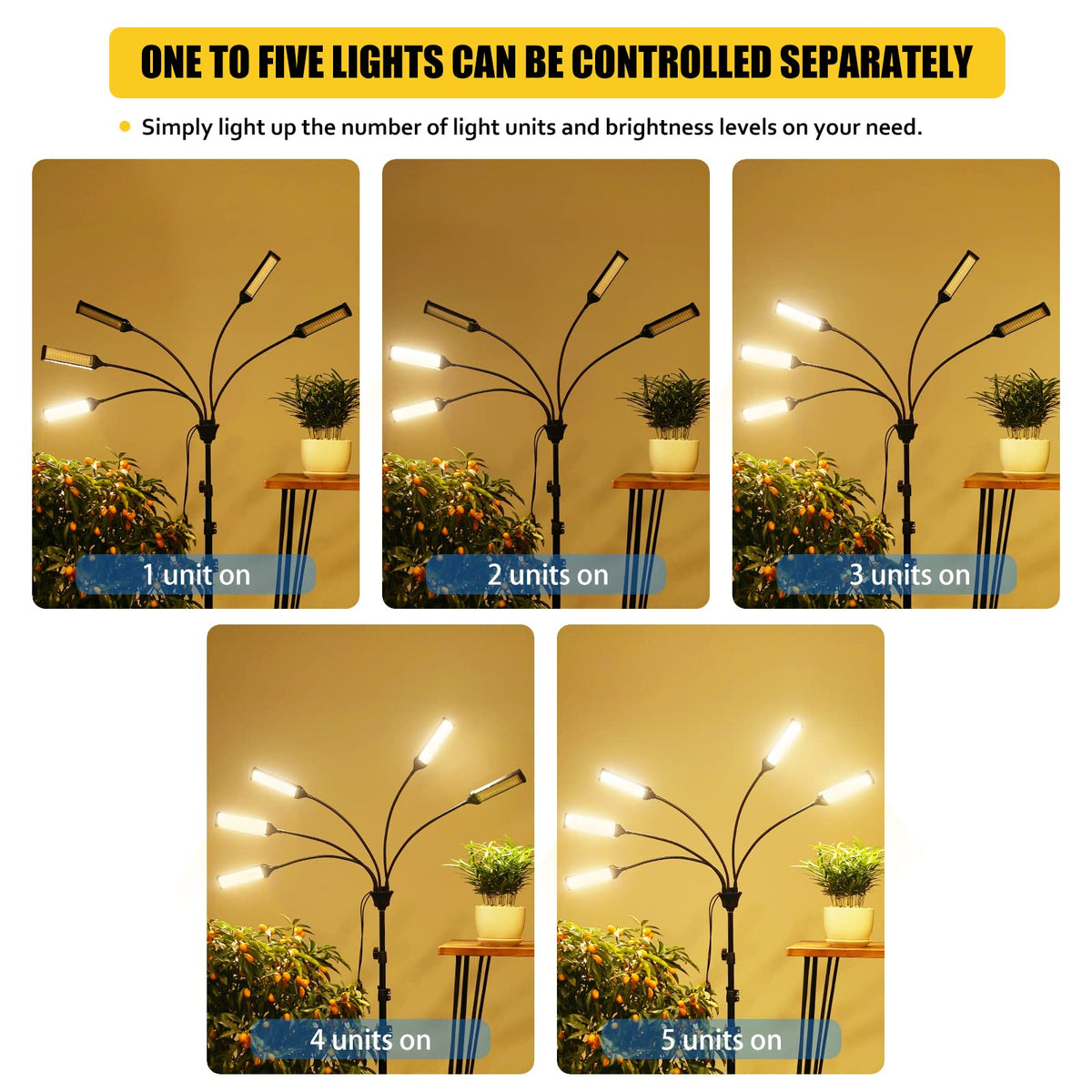 Grow Lights For Indoor Plants, Aukphie Full Spectrum Led Grow Light With Stand, Auto On/Off Timing 3/6/9/12/15/18H & 10 Brightness Levels, Plant Light For Indoor Plants With 450 Leds. (5 Light Heads)