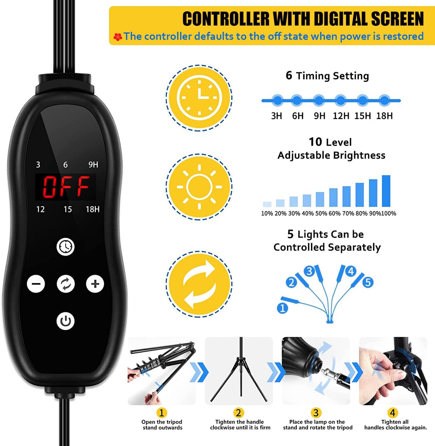 Q: What should I do if the power goes out or if I need to reset the timer?A: If the power is restored, the controller defaults to the off state, meaning you will need to reset the timer to your desired settings. Simply follow the instructions in the user manual to set the timer again, ensuring your plants continue to receive the light they need.