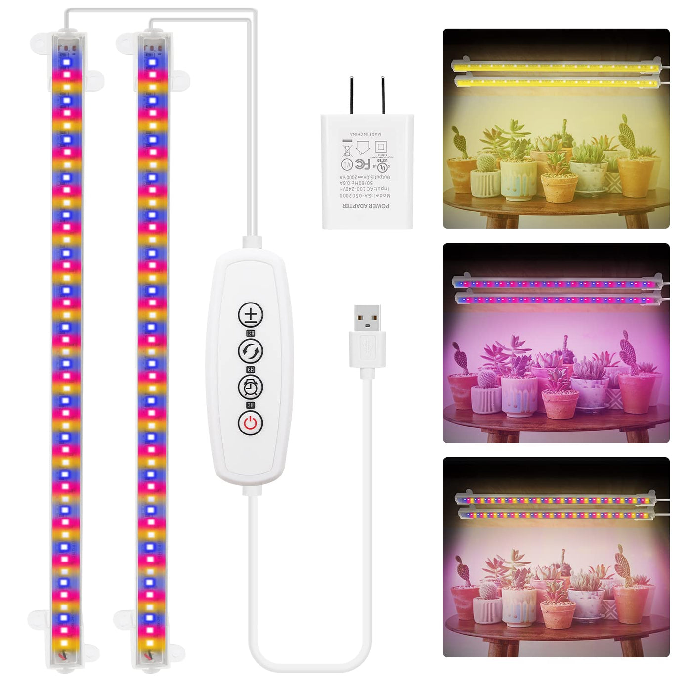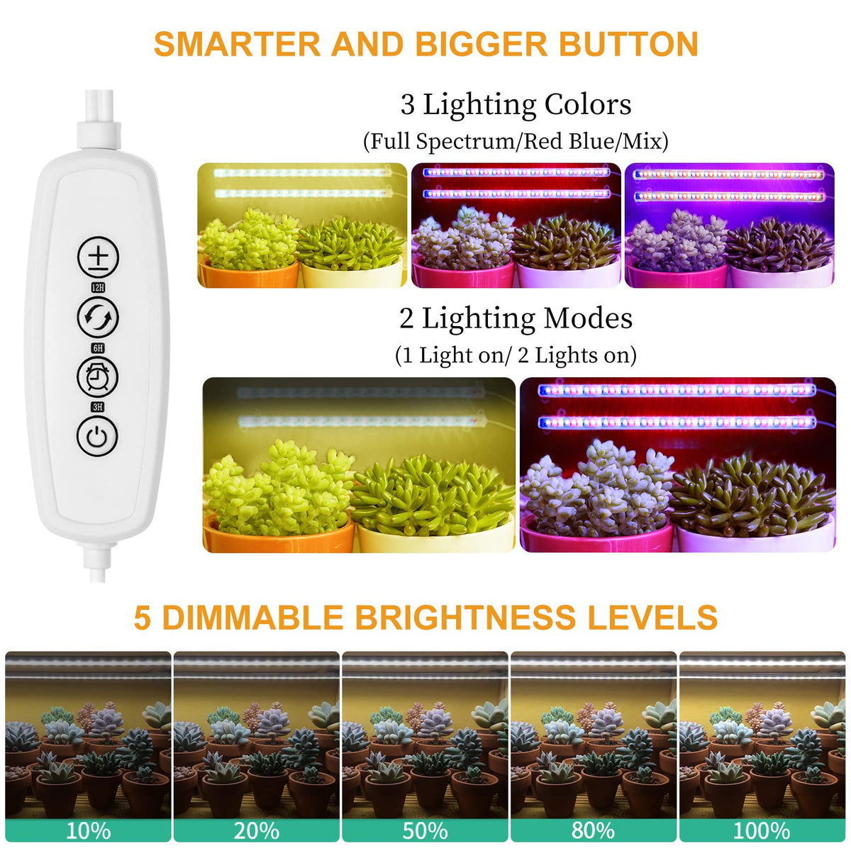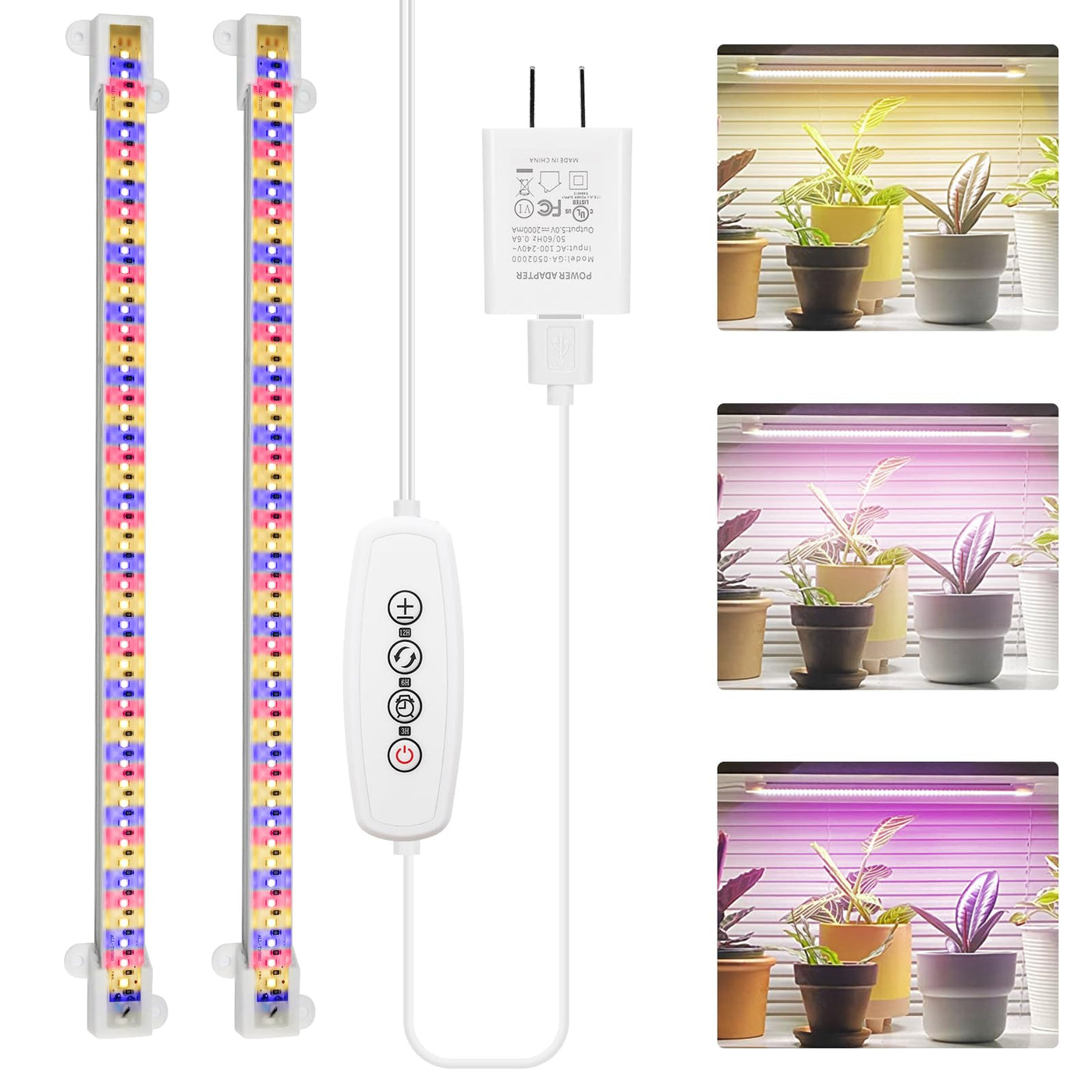 Grow Lights For Indoor Plants Full Spectrum, Grow Light Strips With Auto Timer 3/6/12 H, Plant Lights With Red Blue White Leds, 3 Lighting Modes,5 Dimmable Levels, 2 Packs,Updated Controller