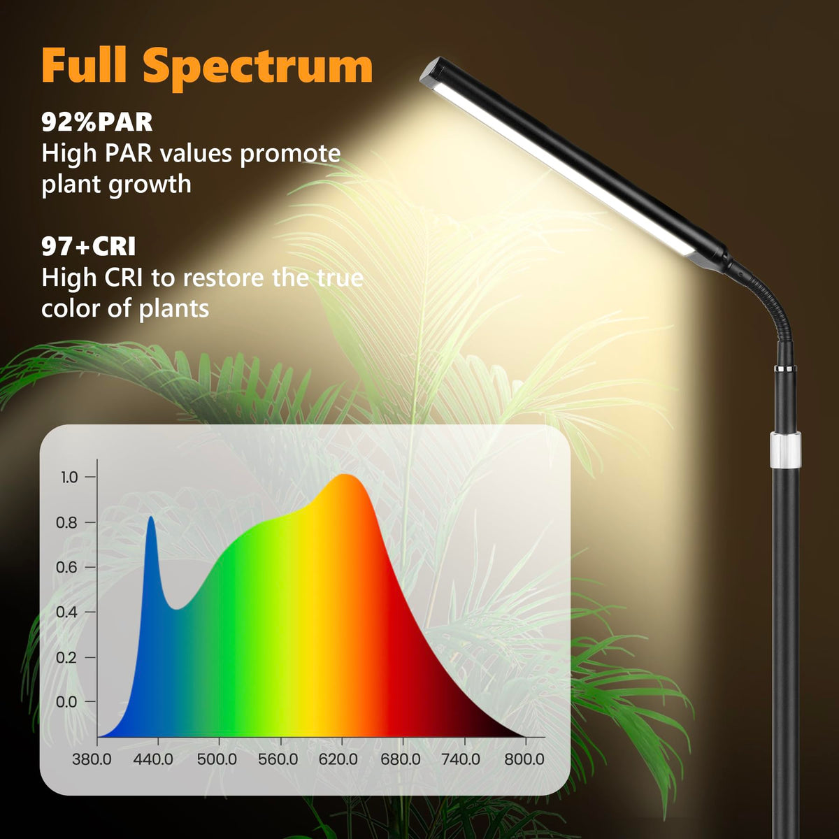 Q: What types of plants are suitable for this full spectrum grow light?A: The full spectrum grow light is designed for a variety of indoor plants, including houseplants, herbs, and even some flowering plants, making it suitable for diverse plant growth stages throughout the year.