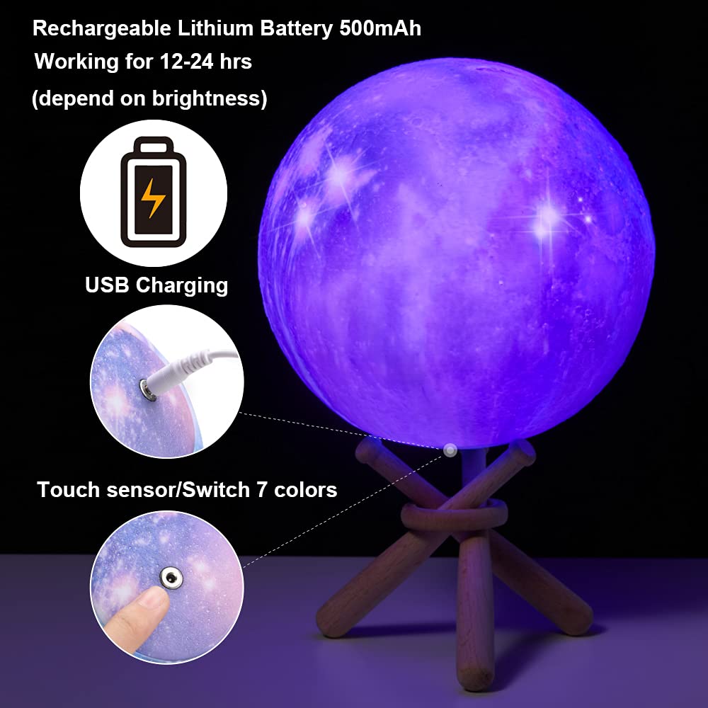 - **Long-lasting Power**: Equipped with a built-in 500mAh rechargeable lithium battery, the Moon Lamp provides an impressive working time of 10 to 35 hours depending on brightness levels. Say goodbye to worries about running out of light during the night.
