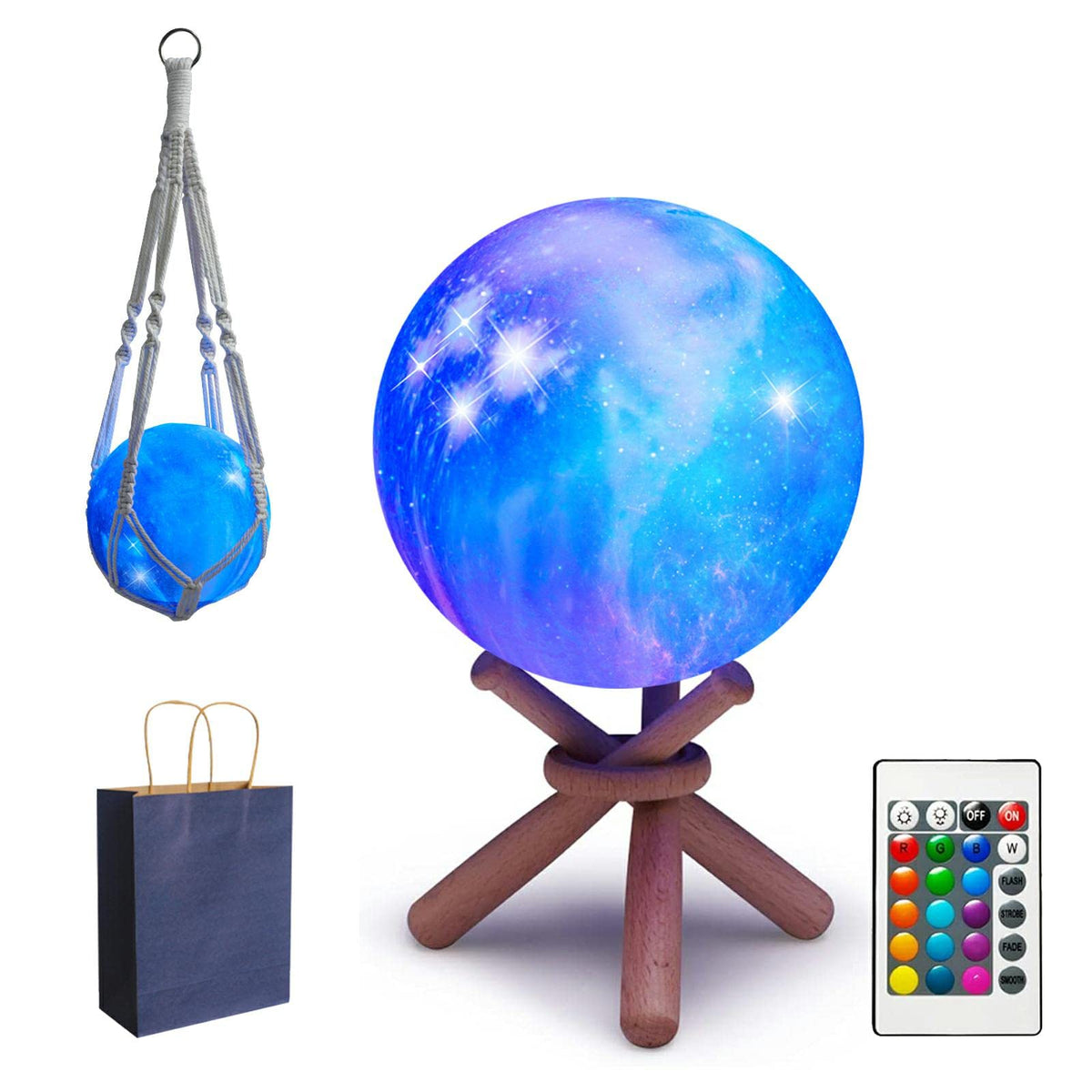 - **Unique Design & Premium Quality**: Crafted from eco-friendly PVC, the Moon Lamp shines beautifully in the dark. The starry sky image is a masterful combination of traditional manual water transfer printing and advanced 3D technology, creating a captivating visual experience.