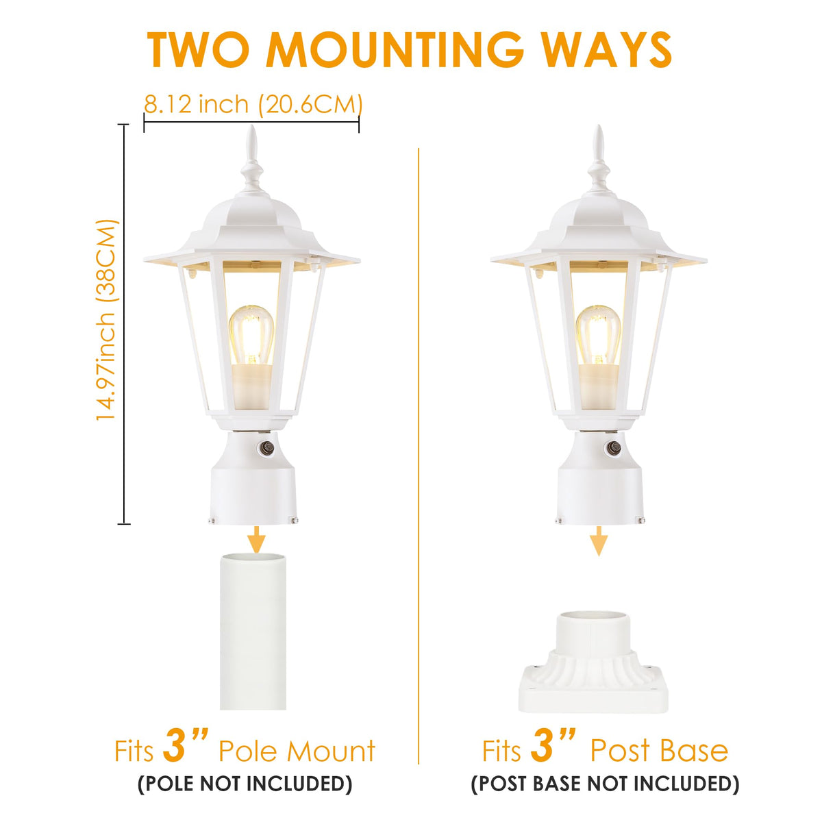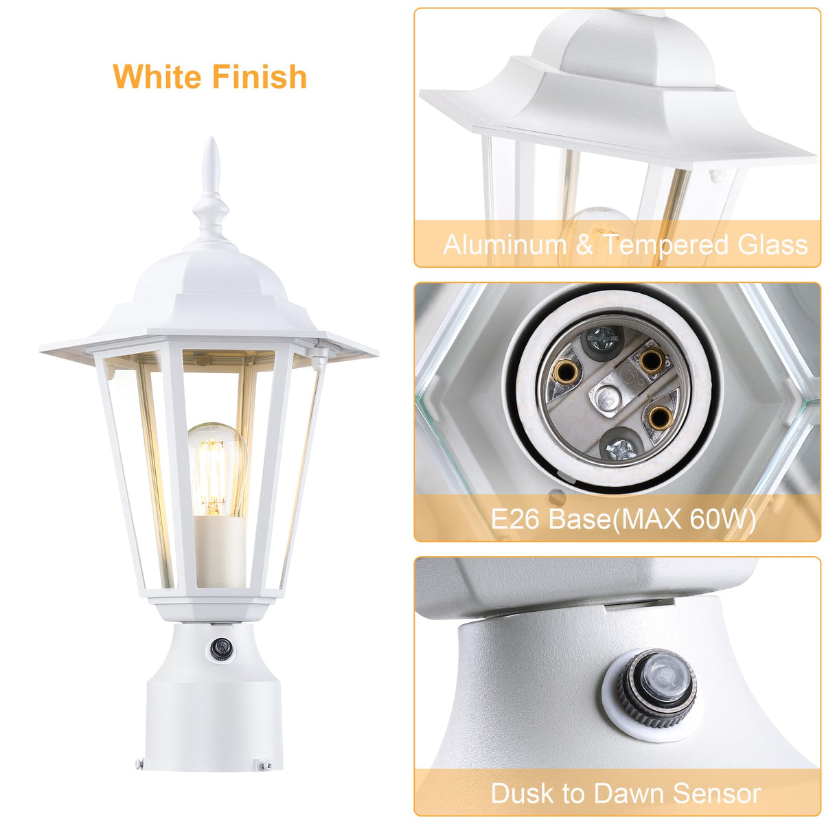 Gruenlich Dusk to Dawn Outdoor Post Lights, Modern White Exterior Lamp Post Light Fixture, Anti-Rust Aluminum Pole Lantern for Garage Front Yard, 1 Pack