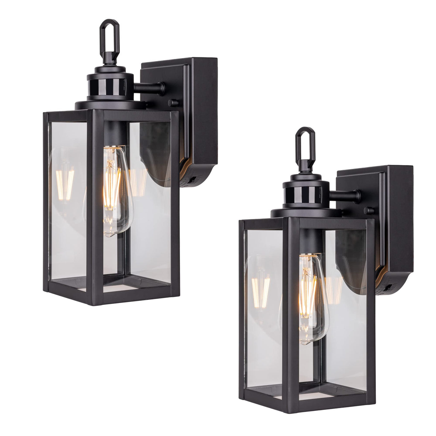 Gruenlich Dusk To Dawn Outdoor Wall Lantern With Pir Sensor, 2-Pack, Matte Black, E26 Base