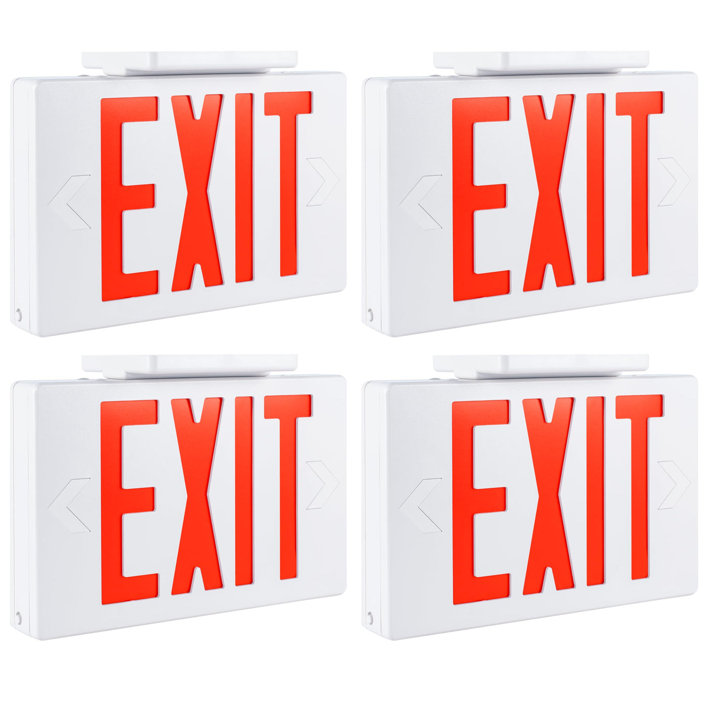 Gruenlich Led Exit Sign, Emergency Light With Double Face And Back Up Batteries- Us Standard Red Letter Exit, Ul 924 Qualified, 120/277 Voltage, 4-Pack