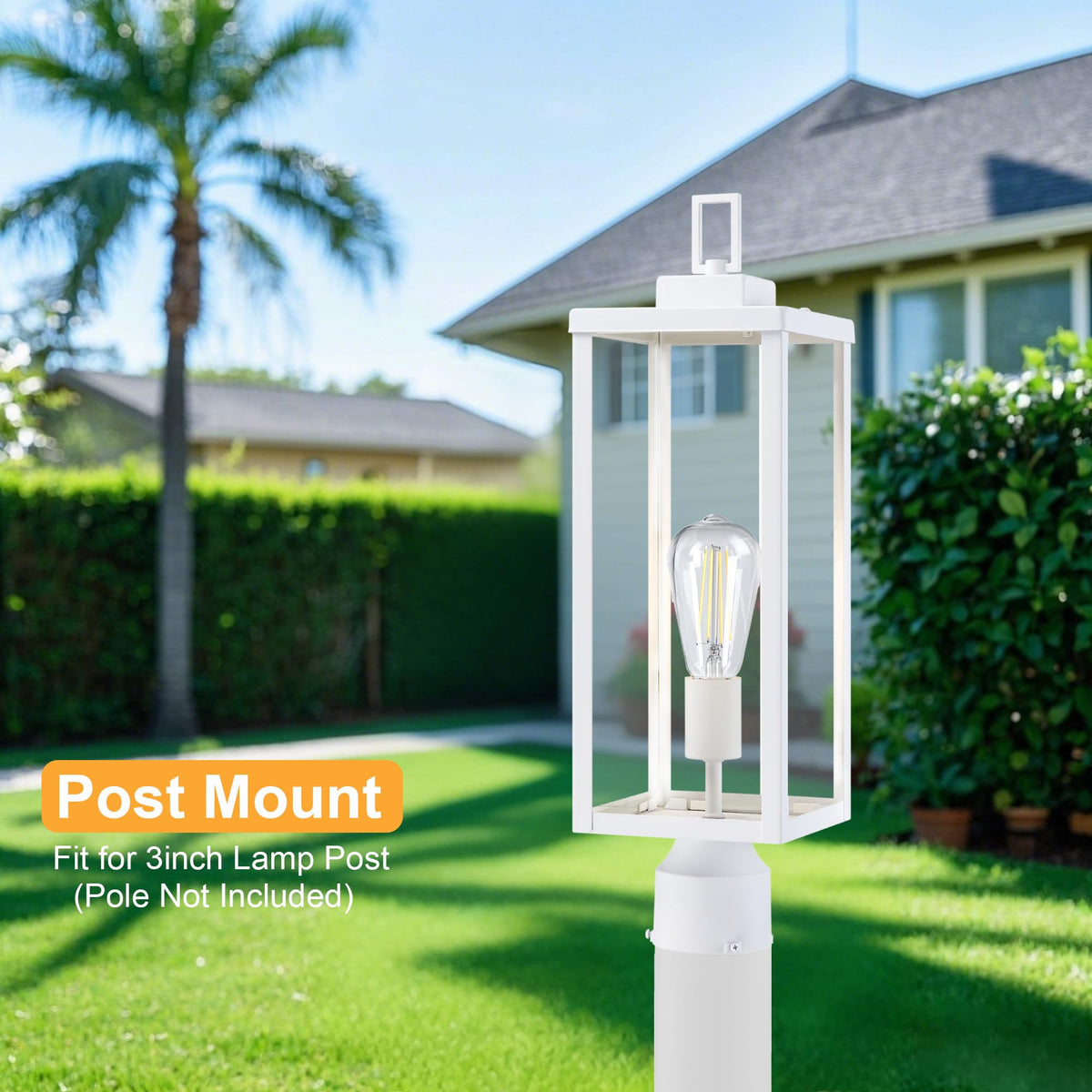 Gruenlich Outdoor Lamp Post Light Fixtures, Exterior Pole Lantern with Tempered Glass, 20 Inch Fence Post Lighting for Garden Yard Pathway, White, 1 Pack