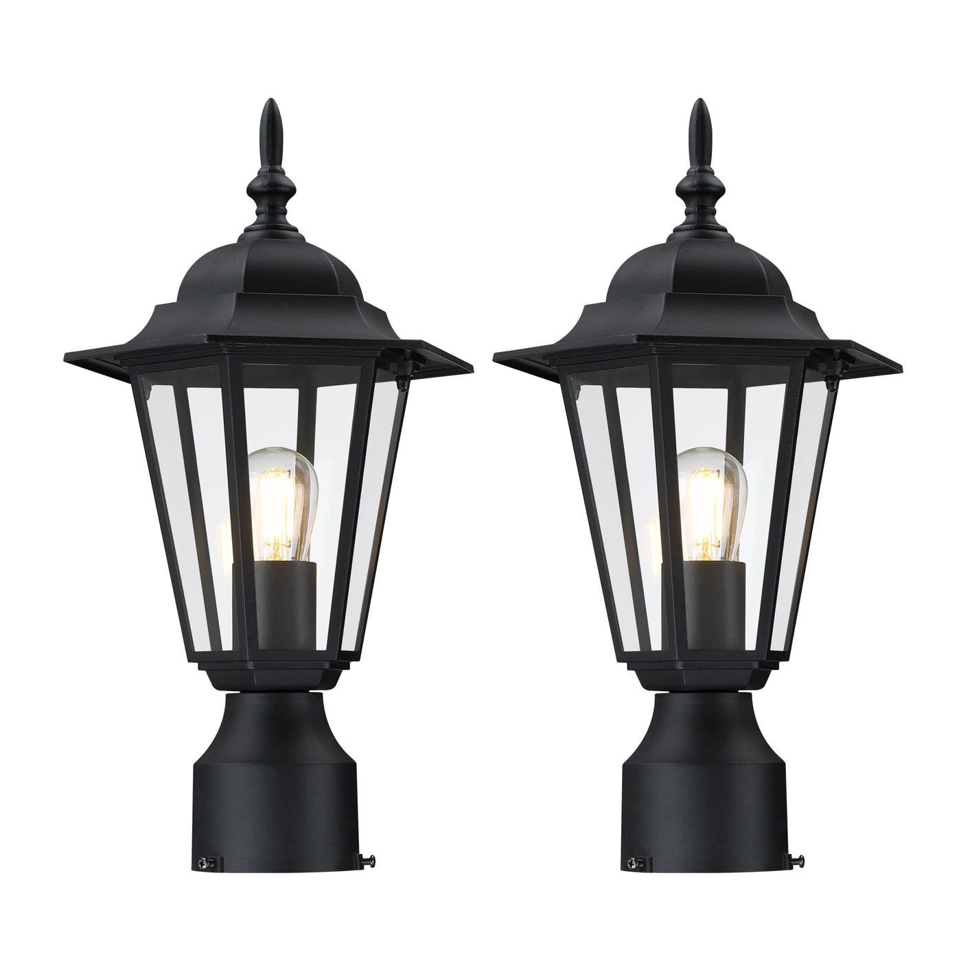 Gruenlich Outdoor Post Lighting Fixture with One E26 Medium Base Max 60W, Aluminum Housing Plus Glass, Bulb Not Included, Black Finish, 2 Pack