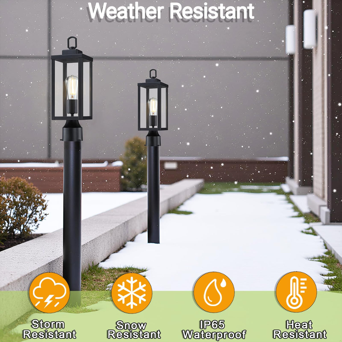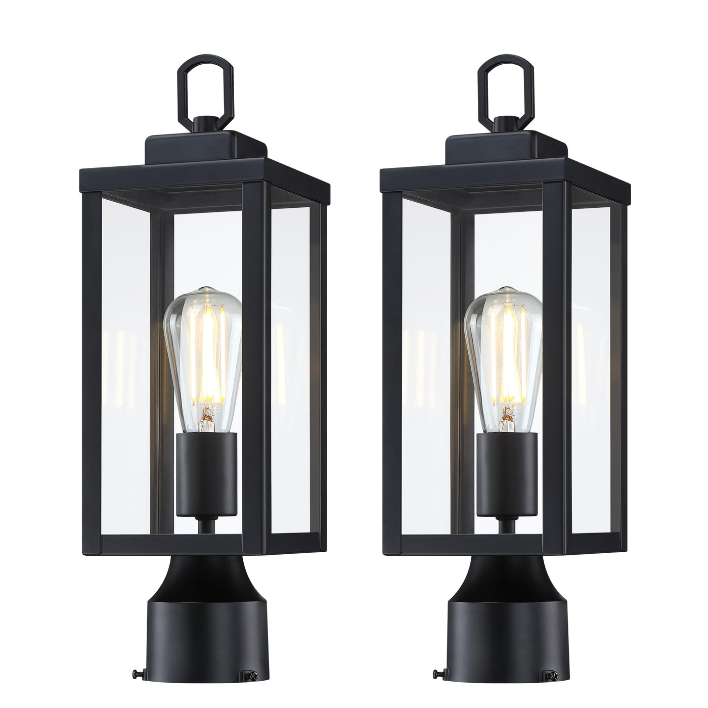 Gruenlich Outdoor Post Lighting Fixture with One E26 Medium Base Max 60W, Metal Housing Plus Glass, Matte Black Finish, Bulb Not Included, 2 Pack