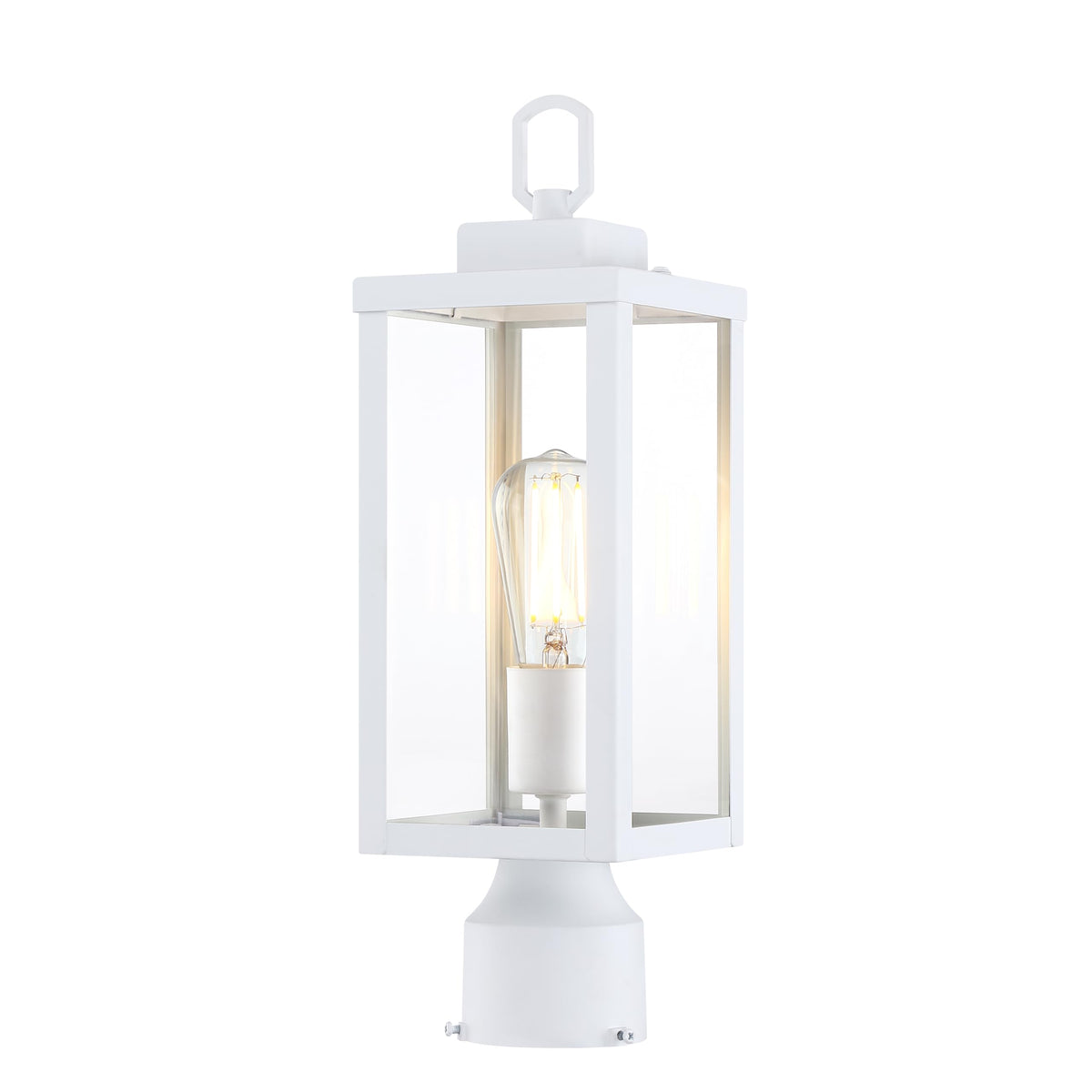 Gruenlich Outdoor Post Lighting Fixture with One E26 Medium Base Max 60W, Metal Housing Plus Glass, Matte White Finish, Bulb Not Included, 1 Pack