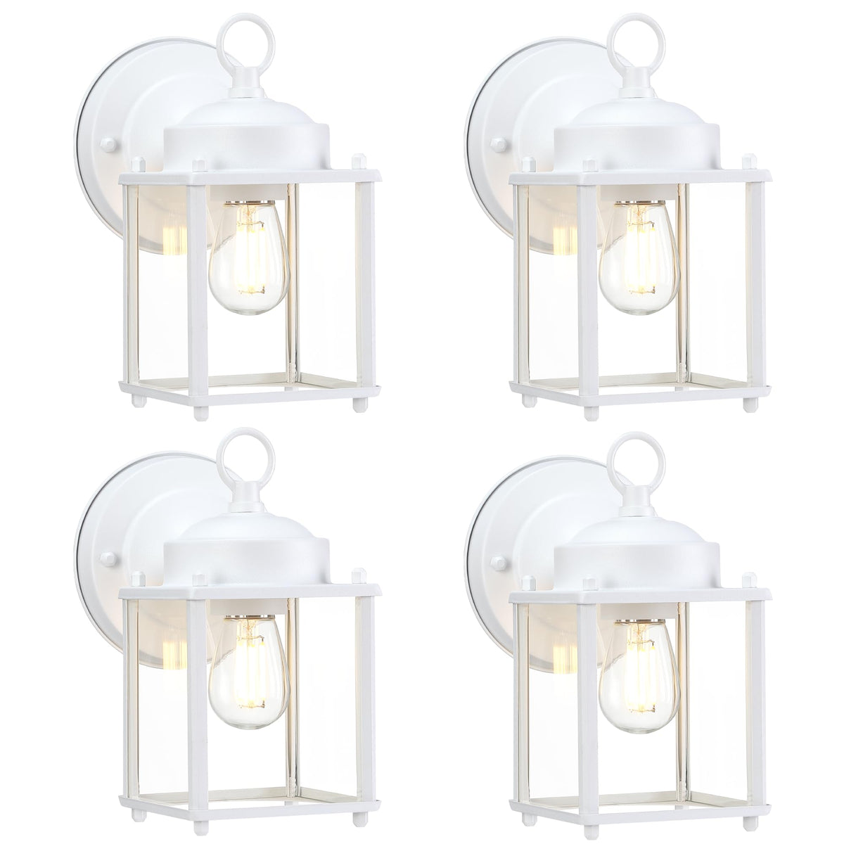 Gruenlich Outdoor Wall Sconce, Exterior Wall Lighting Fixtures With Clear Glass, Front Porch Lighting, Anti-Rust Outside Wall Mount Lights For Patio, Doorway, White, 4 Pack
