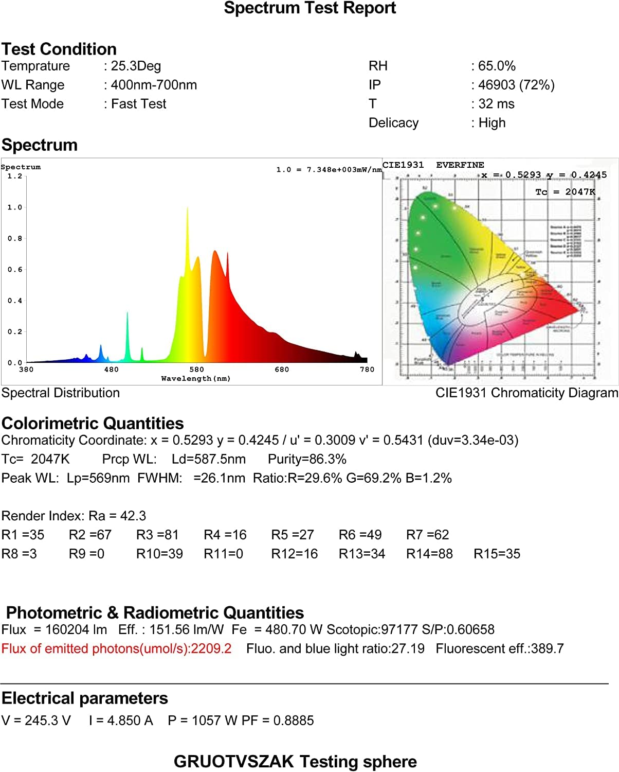 *GRUOTVSZAK HPS series bulbs are made by premium materials to perform the best PPF output and long lumen maintenance. The spectrum is design to concentrate red zone and output strong PAR to stimulate plant flowering. GRUOTVSZAK provides HPS veteran a reliable choice. *GRUOTVSZAK HPS1000WDE perform the ideal 1:8 Blue/Red PPF output ratio with over 2100umol PAR output, it triggers the strong flowering boost.