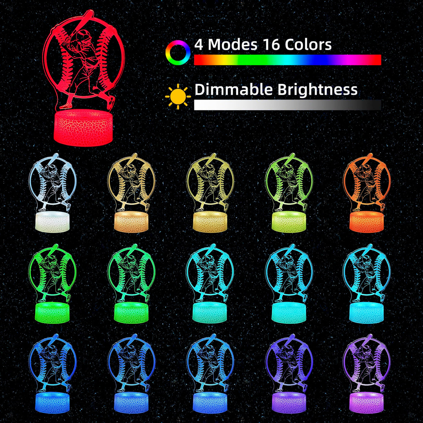 Gucoxny Baseball 3D Night Light,16 Colors Changing with Smart Touch & Remote Control Bedside Decor Lamp Christmas Birthday Gifts