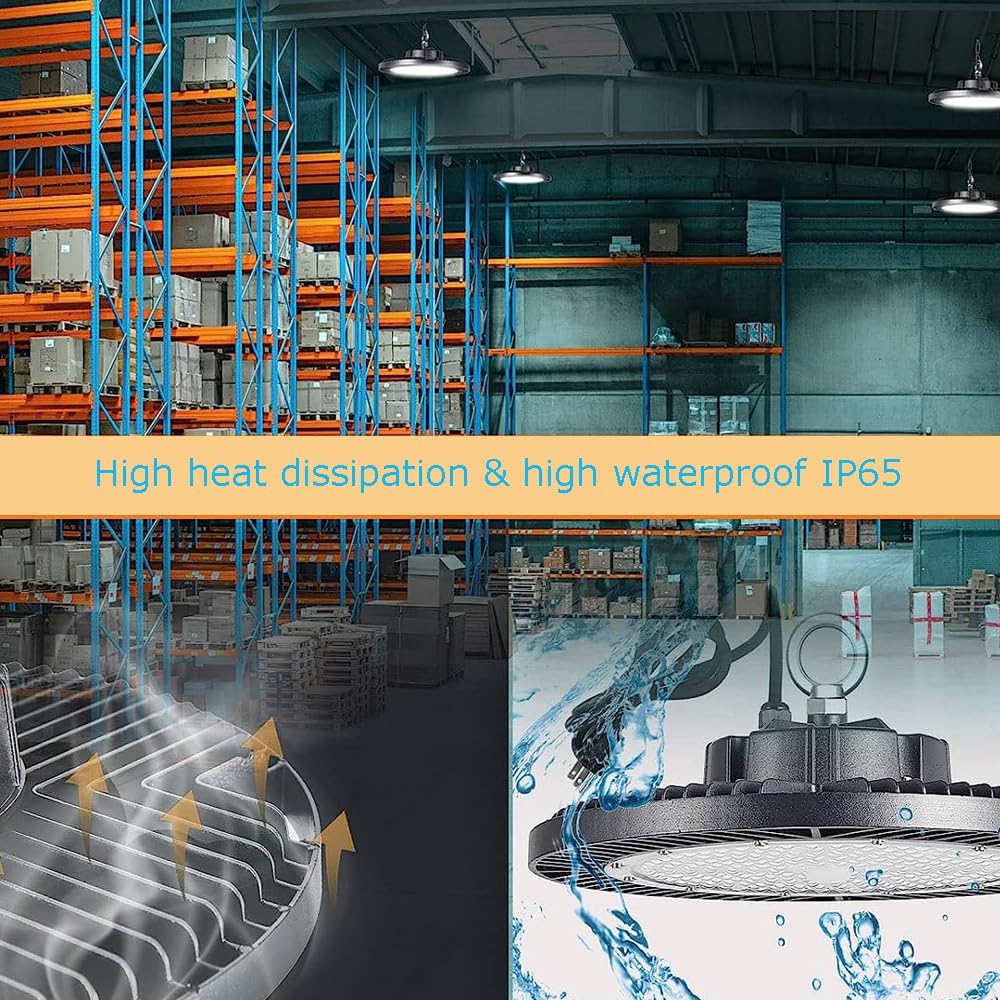 Q: What are the specifications of the Gugsey Led High Bay Lights?A: The Gugsey Led High Bay Lights have a power rating of 200W, delivering an impressive 28000 lumens of brightness with a color temperature of 5000K. They feature an IP65 waterproof design, making them suitable for both indoor and outdoor use.