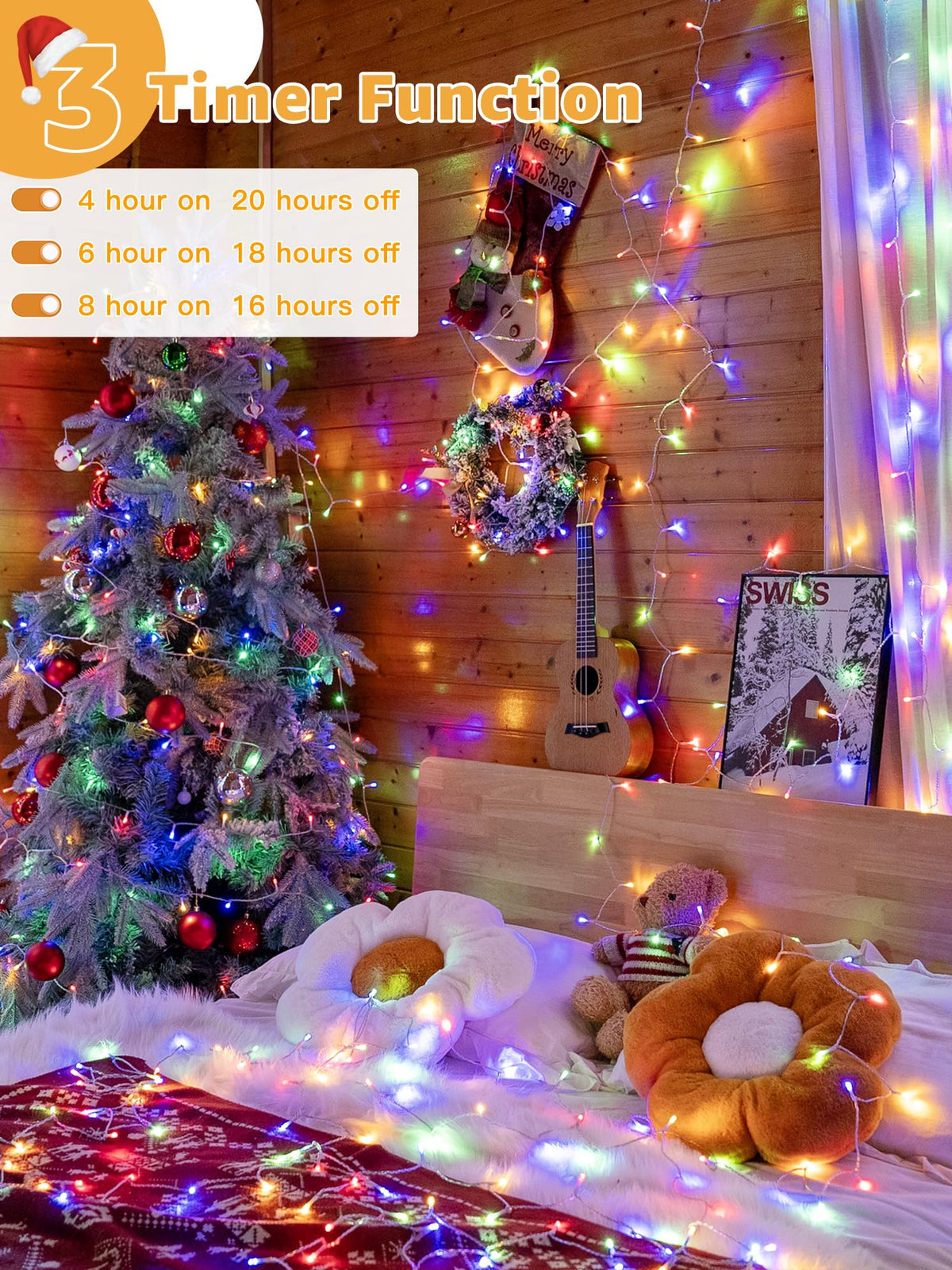 Ready To Upgrade Your Indoor And Outdoor With Our Christmas Lights For Tree ? 1: This Led Christmas Tree Lights Comes With Storage Wheel And Environmentally Friendly Material, With No Irritating Odor At All, Outside Christmas Lights Feature The Latest High Brightness Energy-Saving Led Beads. The Storage Wheel Made It Easy To Put Up And Take Down. And It Ensure The Lights Wont Get All Tangled Up While Unrolling A Few Feet At A Time. 2:The Led Outdoor Christmas Lights Waterproof With 1200 Led Beads. Compared With Other Multicolor Christmas Lights On The Market, Our Outdoor Xmas Lights Have A Definite Advantage In Terms Of Length And Number Of Led Lights, Which Means You Can Just Use Our Plug In String Lights To Maximize The Decoration Of Your Place. 3: These Indoor Christmas Lights Come With Remote Offer 100%-75%-50%-25% 4-Level Brightness, You Can Choose The Brightness That Makes You Feel Most Comfortable. Also, The Christmas Led Lights Has 3 Timing Modes To Choose From, ''Light Up For 4Hours'', ''Light For 6 Hours'', ''Light For 8 Hours''. 4:The Outdoor String Lights Led Have 8 Lighting Modes, With Remote Control, You Can Easily Adjust The Brightness, Set The Timer, Or Switch The Modes From Steady To Others. Different Flash Models Give You More Choices. The Led Christmas Lights Indoor Will Help Your Decorating Worries. 5: These Lights For Christmas Has Ip44 Waterproof Rating, Even In Heavy Rain, And The Classroom String Lights Will Not Be Damaged In Strong Winds And Snowstorms. So This Indoor Christmas String Lights Are Perfect For Decorating. The Memory Function Remembers The Last Light Mode Setting.