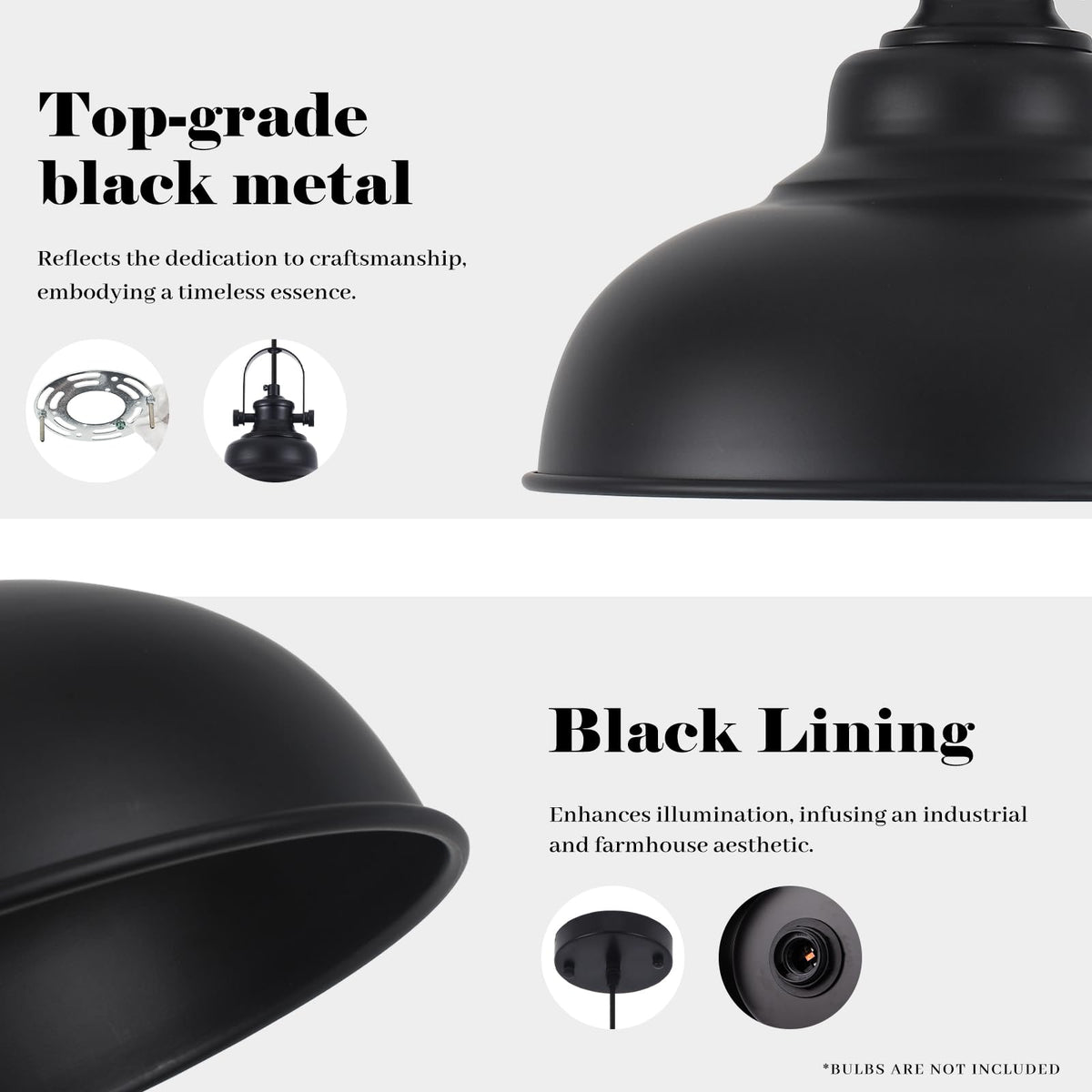 Q: What settings are suitable for these pendant light fixtures?A: These versatile black pendant lights are ideal for a range of settings, including kitchens, dining areas, restaurants, bars, galleries, offices, bedrooms, hallways, and even farmhouses or warehouses.