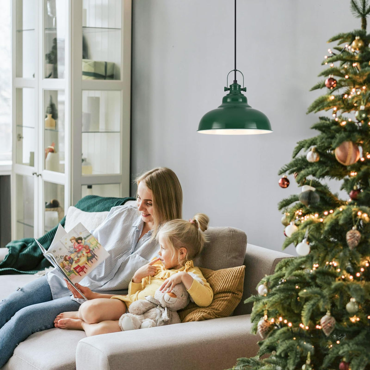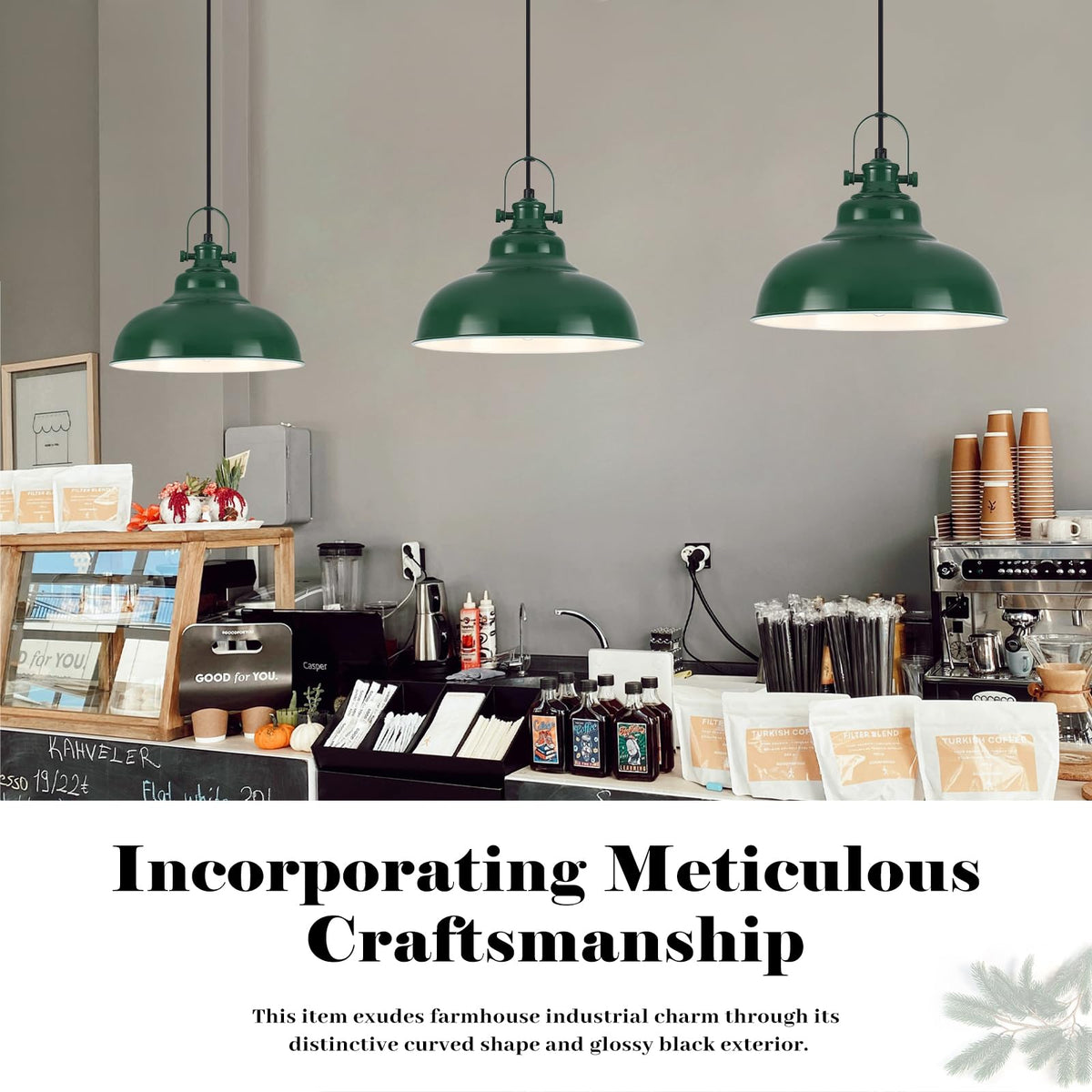 Guihualove Green Pendant Lights Kitchen Island 2 Pack, Dome Pendant Light, Farmhouse Pendant Light Fixtures (11.41'' W), Island