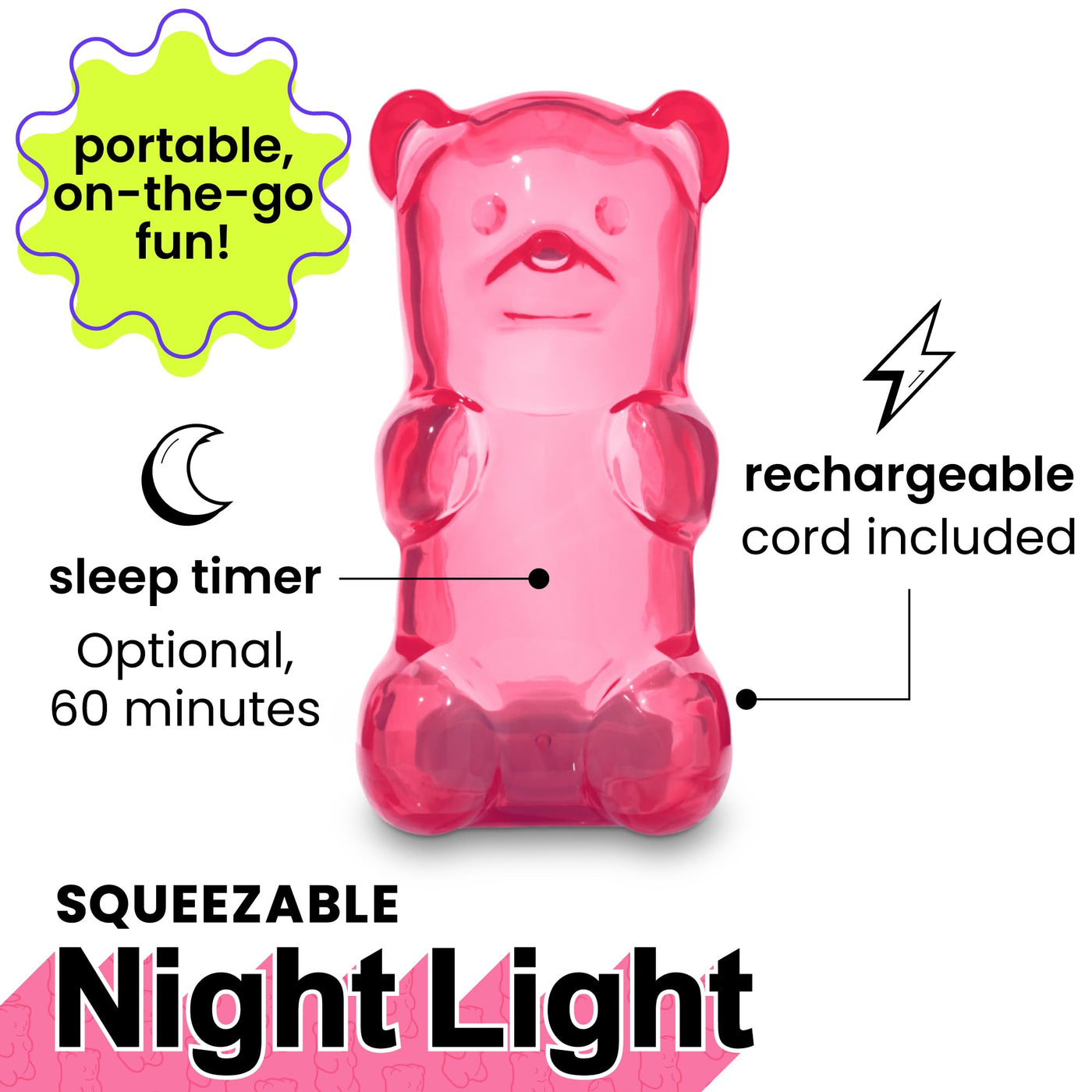 Gummygoods Squeezable Gummy Bear Night Light - Rechargeable, Portable, Squishy Lamp, 60-Min Sleep Timer - Christmas Gift for Kid