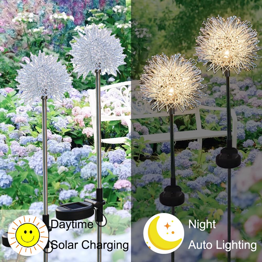 - **Novel Garden Decor**: Crafted from durable silver aluminum wire, the dandelion shell features warm white LED beads that create a stunning illumination at night while adding vibrant color to your garden during the day.