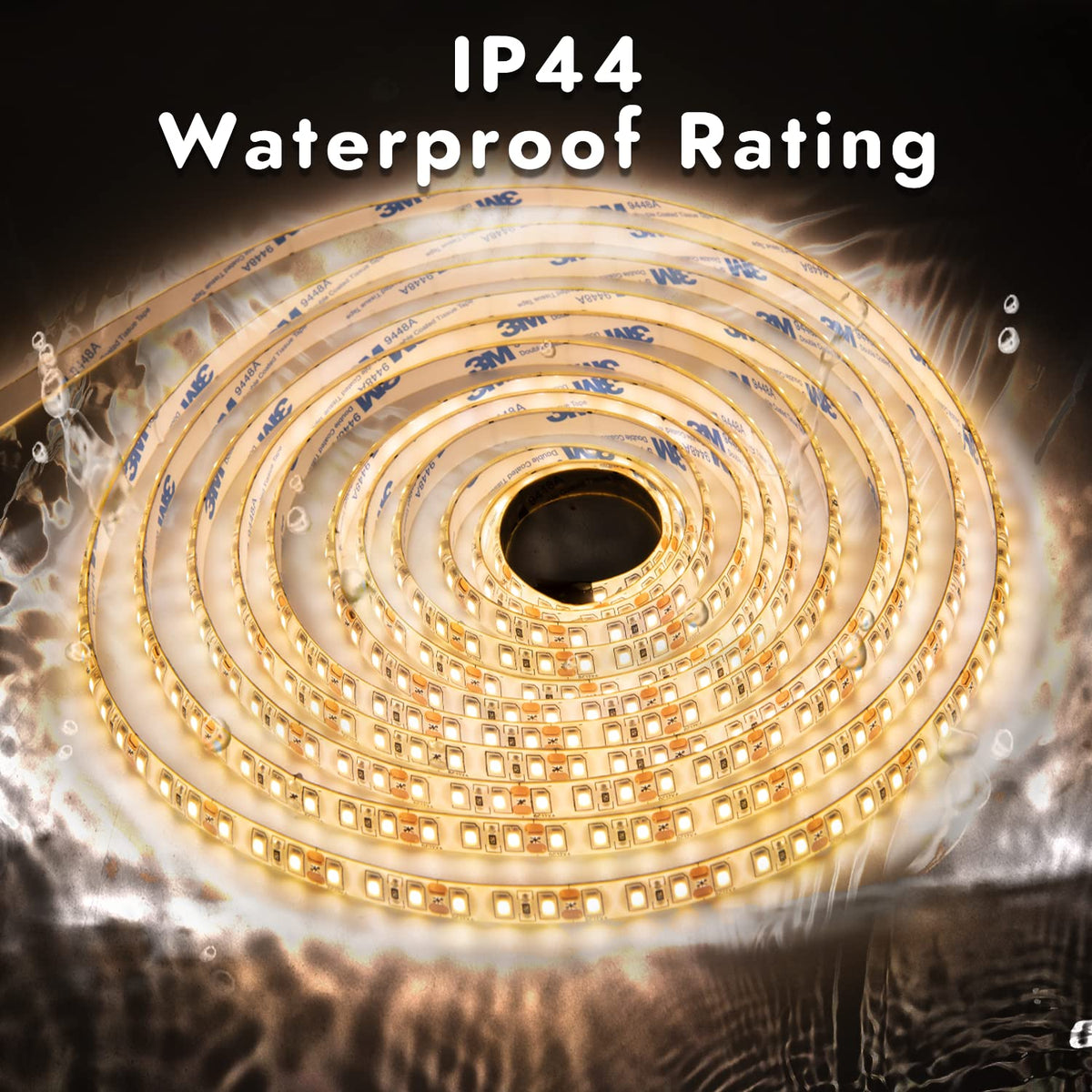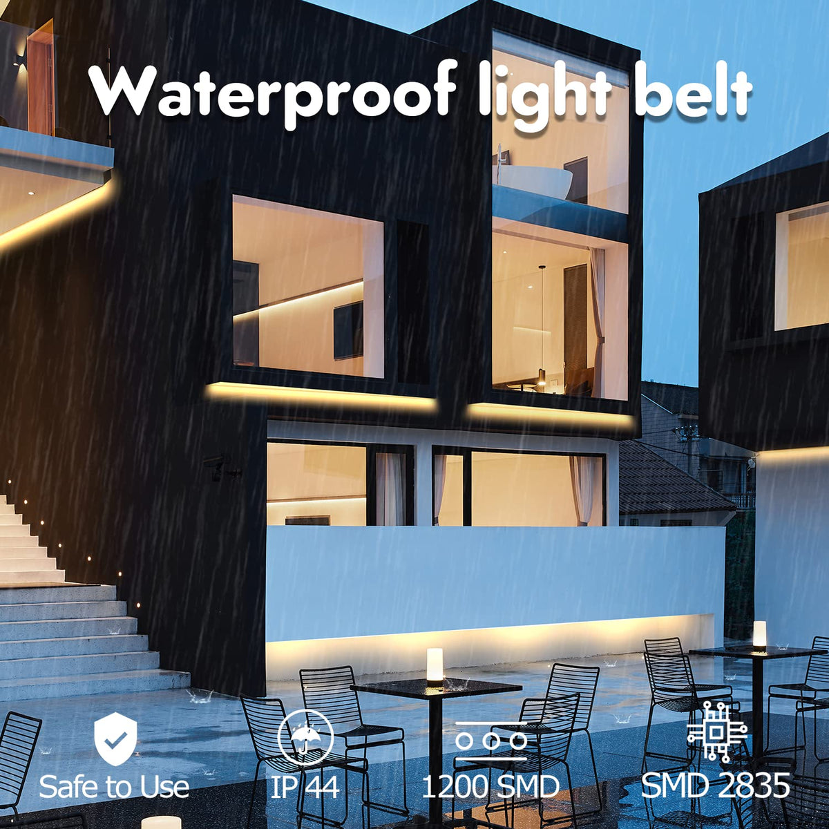 White Led Strip Lights, Waterproof Cuttable 1200 Smd 2835 Led Tape, 6000K 12V 65.6Ft/20M Flexible Ribbon, Kitchen Cabinet Lighting