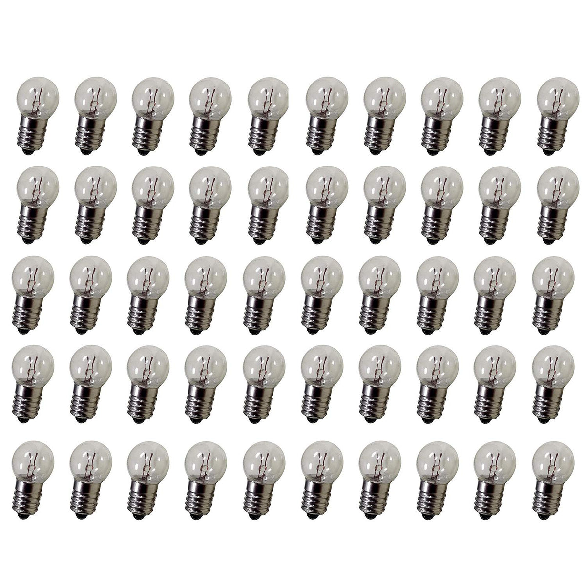 Gutreise Dc 50Pcs E10 6V 0.3A Warm White Bulb Light Bulbs Miniature Screw Base (6V)