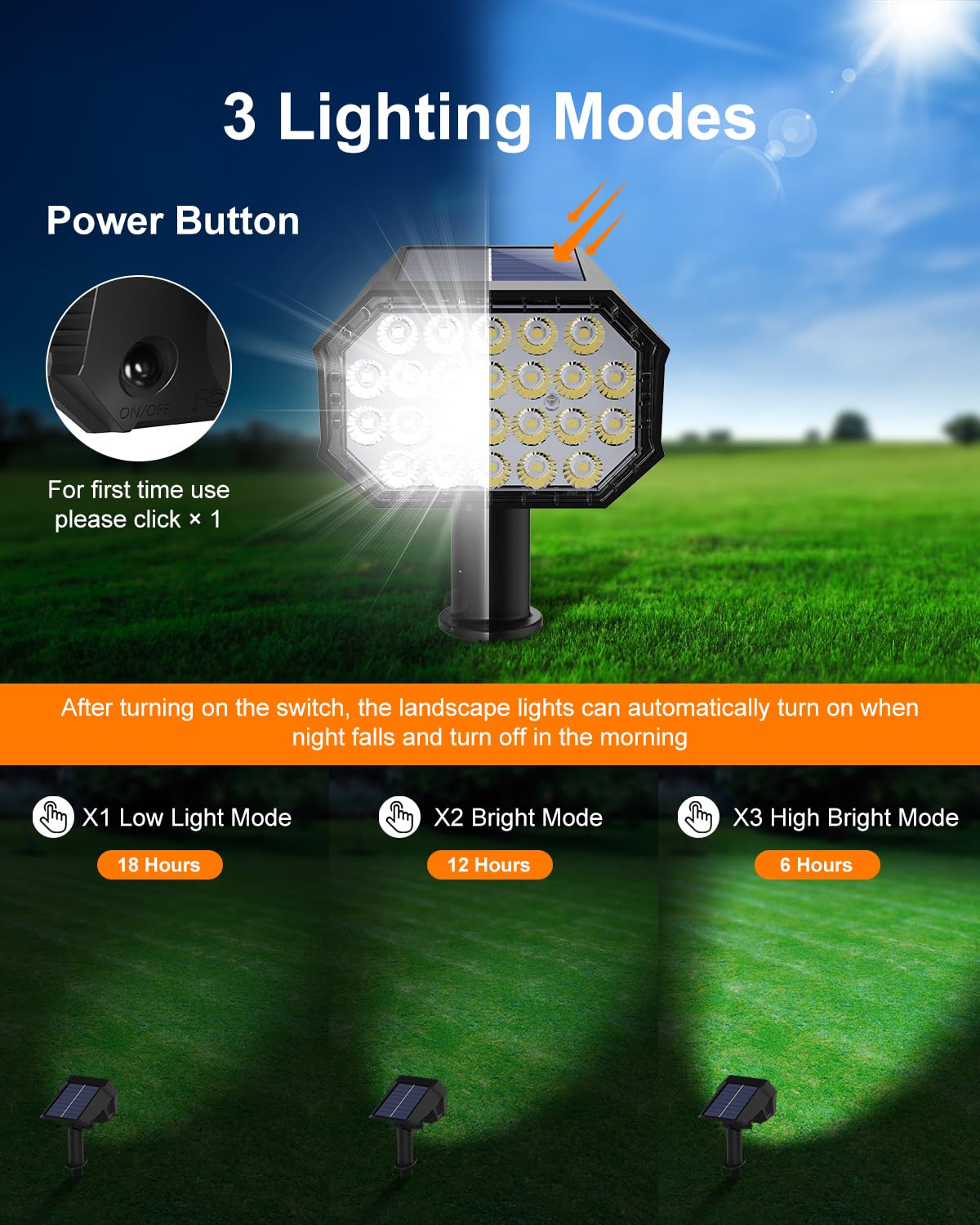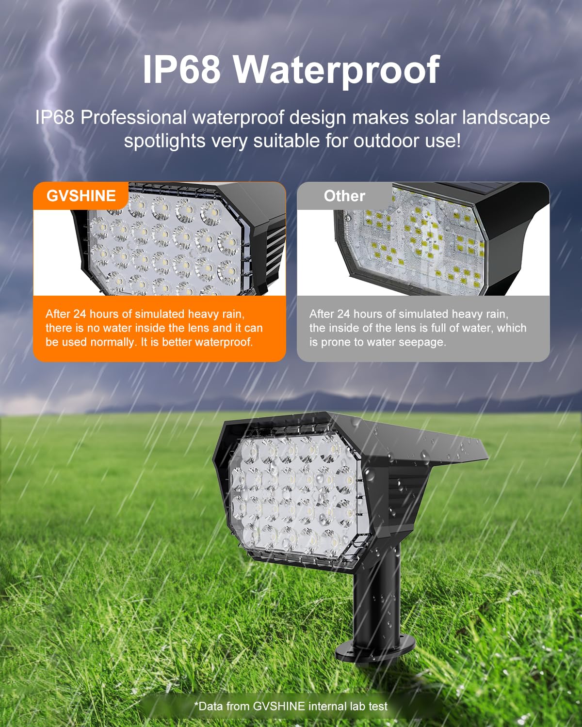Constructed with high-quality ABS material and rated IP68 waterproof, these solar spotlights are built to withstand harsh weather conditions, from freezing to scorching temperatures (-4 °F to 140 °F). This durability ensures a longer service life, making them a reliable addition to your outdoor decor.