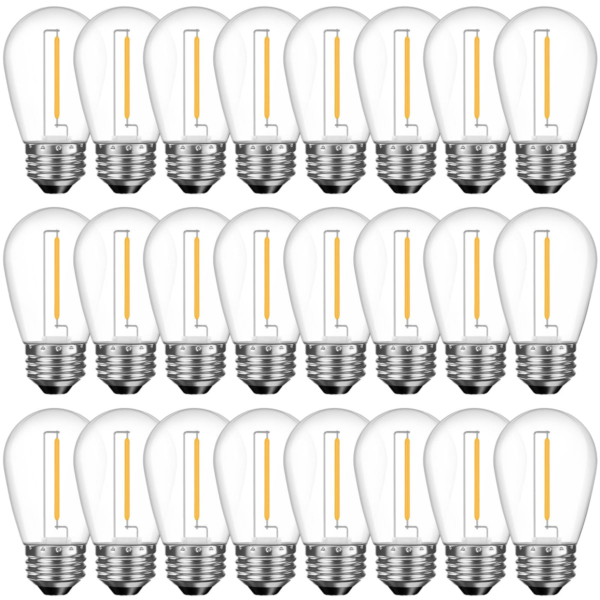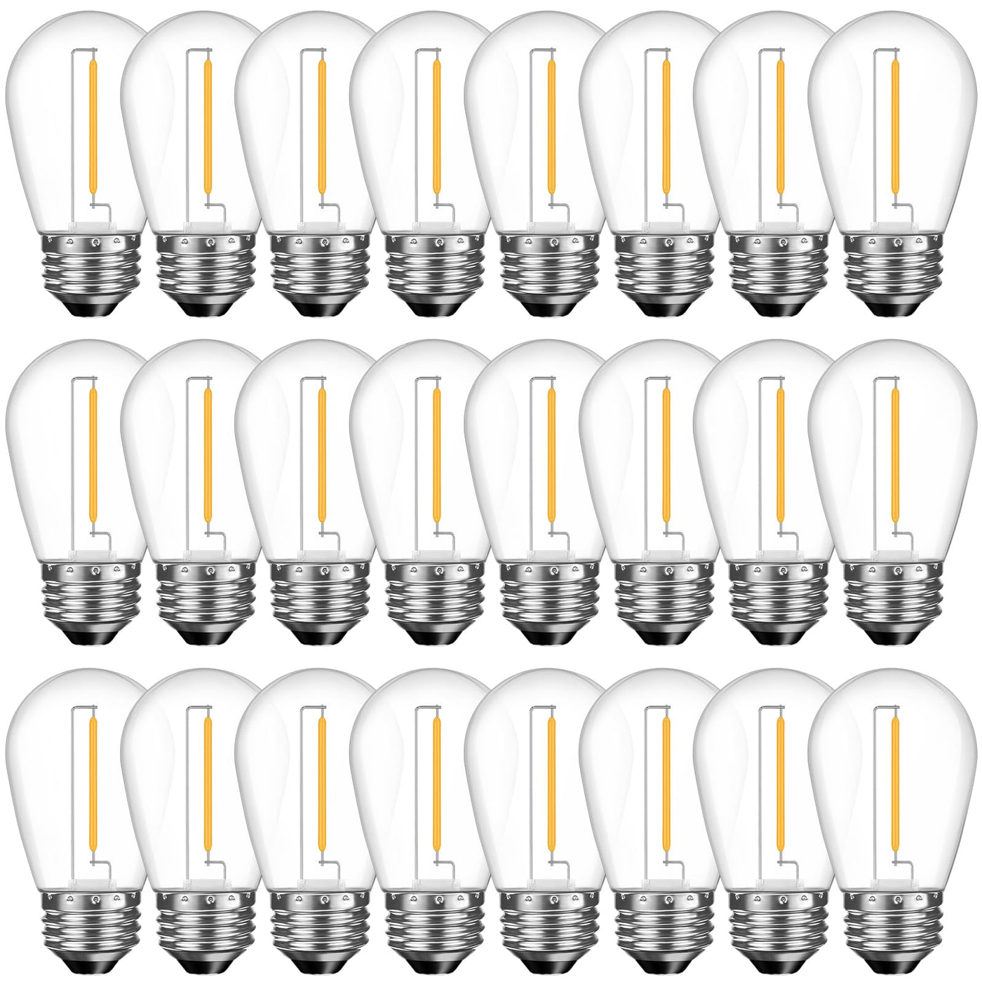 Gvvoohome 24 Pack Shatterproof S14 Led Replacement Bulbs For Outdoor String Lights, 1W Equivalent To 11W Incandescent Bulb, Soft