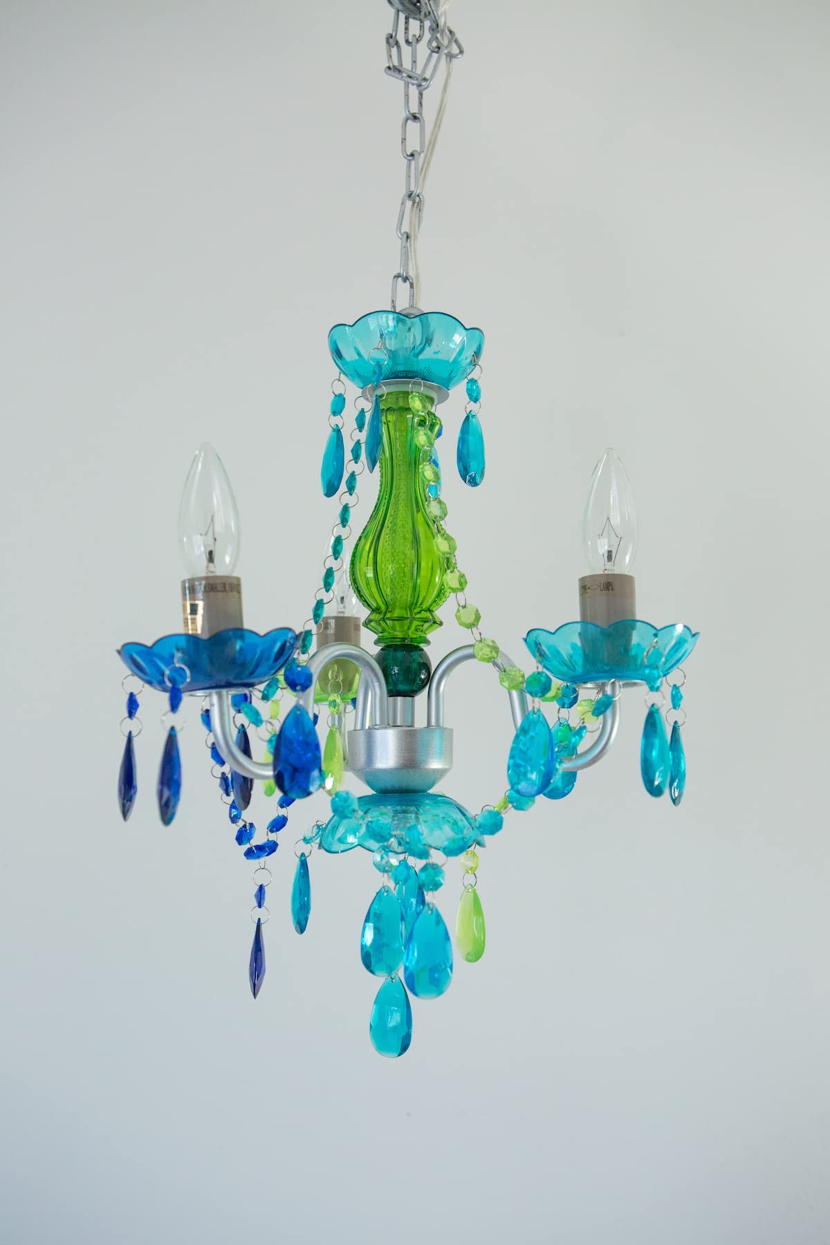 Enhance your living space with the Blue Green 3 Light Plug-in Chandelier by Gypsy Color, a stunning combination of style, practicality, and innovation, designed to elevate your home decor effortlessly.