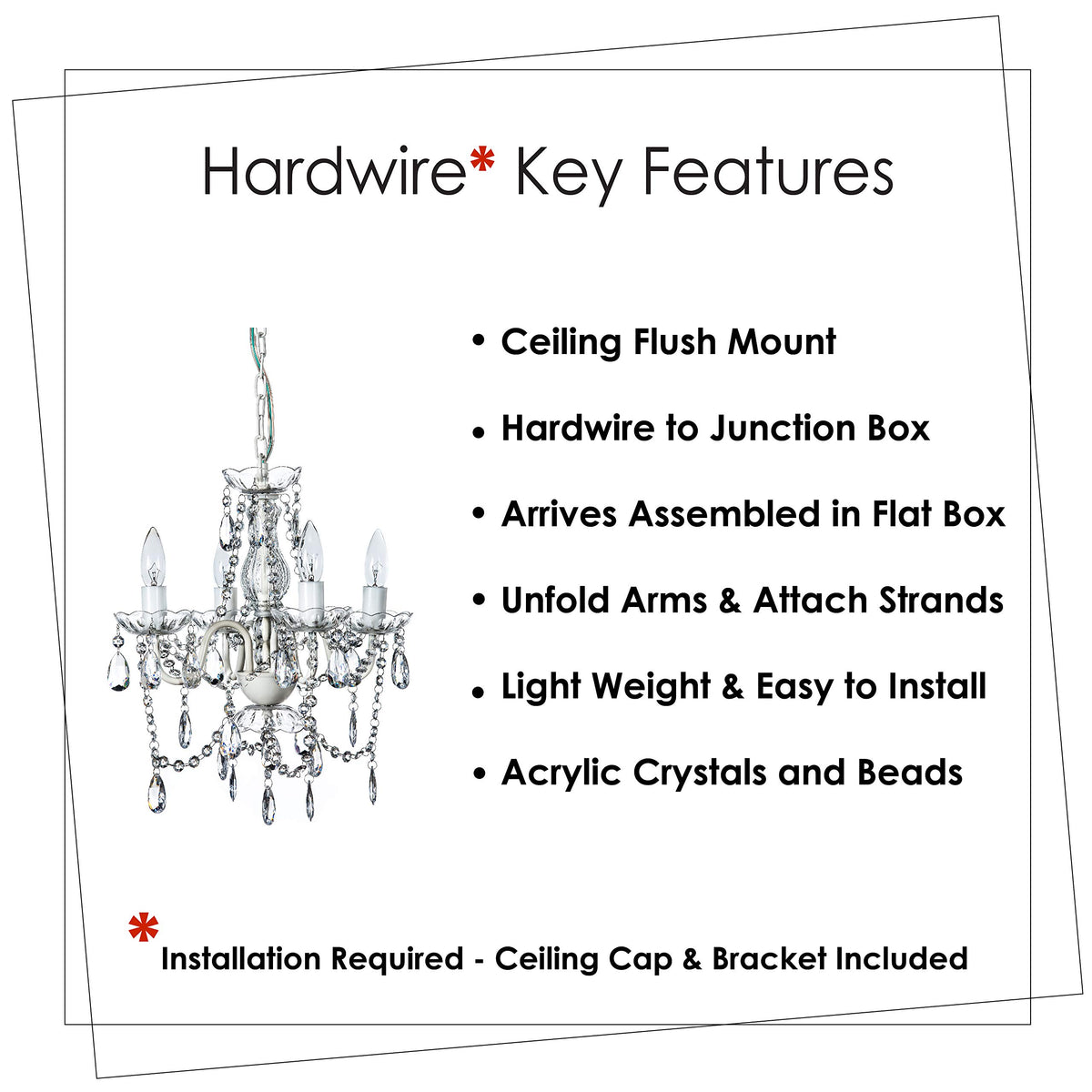 Transform your spaces with the charm and elegance of The Original Brink House 4 Light Crystal White Hardwire Flush Mount Chandelier, where innovative design meets quality craftsmanship.